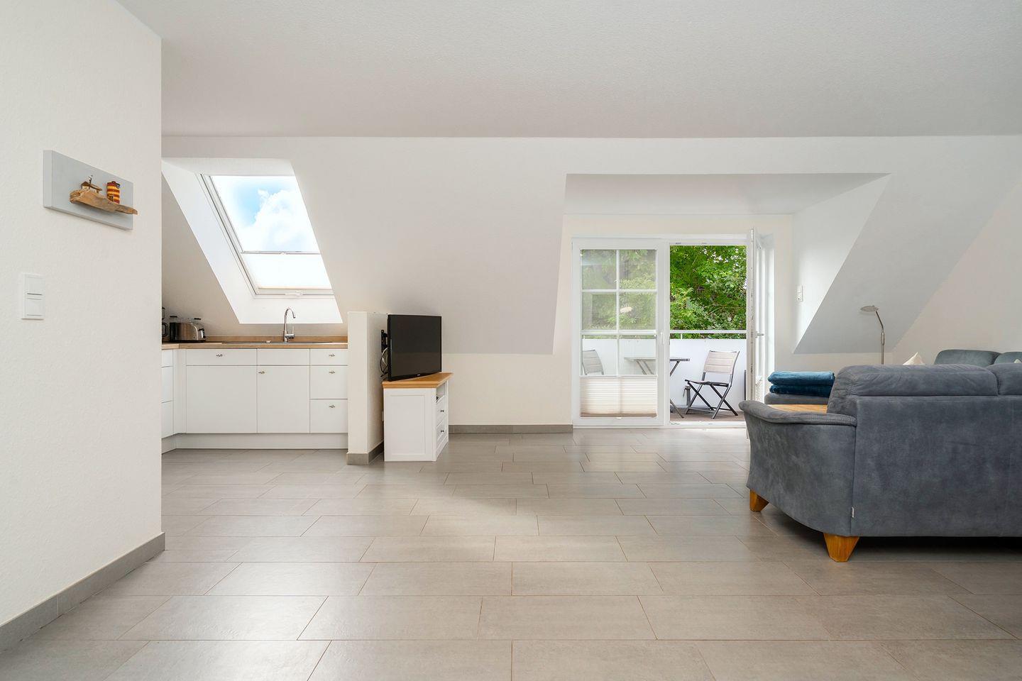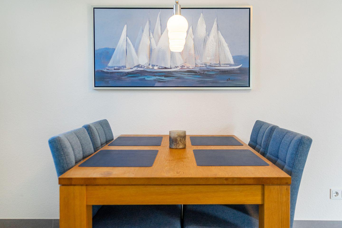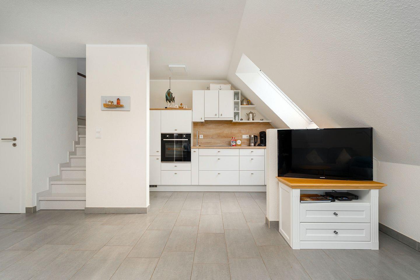 Moderne, hundefreundliche Obergeschosswohnung in Greetsiel, nahe Ortskern und Zwillingsmühlen, mit Balkon und komfortabler Ausstattung.
