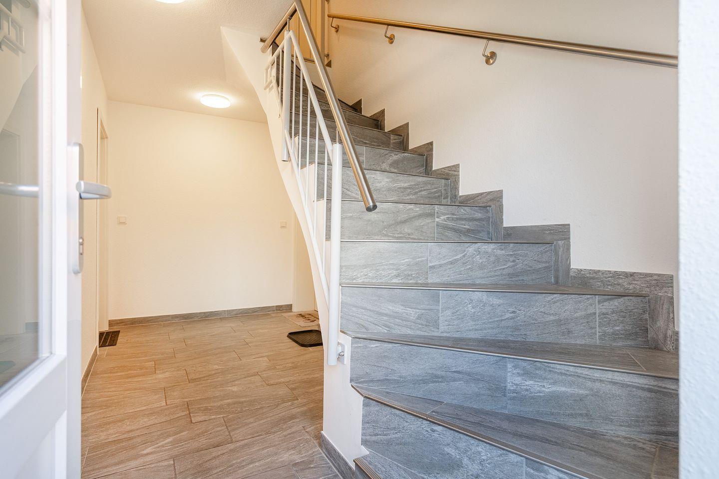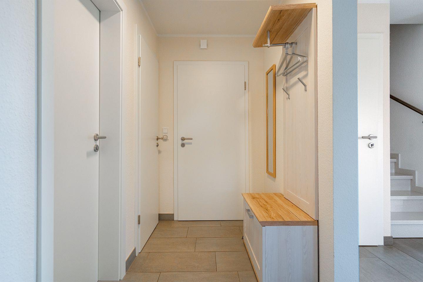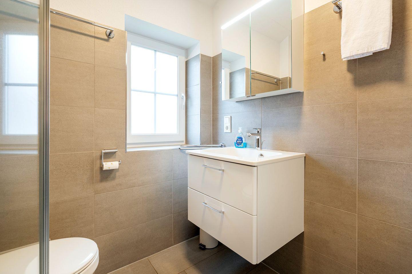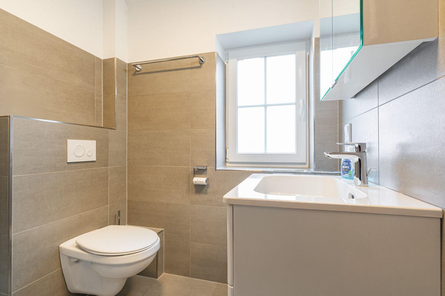 Die Wohnung verfügt über 2 Schlafräume (1xOG und 1x im Dachstudio), ein Duschbad mit Fenster und Föhn sowie ein separates WC. Das Obergeschoss ist mit hochwertigen Fliesen versehen und mit Fußbodenerwärmung ausgestattet. Im Dachstudio wurde Vinylboden in Holzdielenoptik verlegt und verleiht dem Schlafzimmer mit dem Bullaugen-Fenster ein gemütliches Kajütenfeeling.