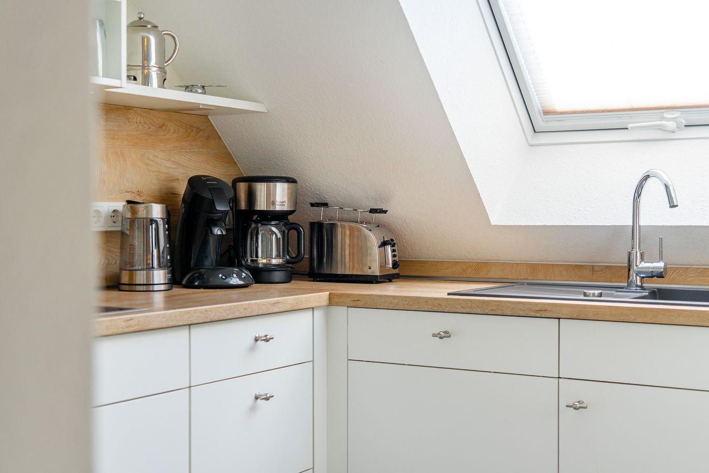 Im hochwertig ausgestatteten Wohnzimmer finden Sie zwei gemütliches Sofas mit einem Smart-TV und den Esstisch mit vier bequemen Polsterstühlen. Des Weiteren liegen viele Gesellschaftsspiele bereit, sodass einem schönen Spieleabend nichts mehr im Wege steht! Die hochwertige Küche bietet sämtliches Zubehör von Kaffeemaschine, Senseo-Kaffeepadmaschine, Mikrowelle, Toaster, Eierkocher, Wasserkocher und einem kleinen Radio bis hin zu einem Kühlschrank, einem separaten Gefrierschrank, einem Backofen, Induktionsherd und einer Geschirrspülmaschine.