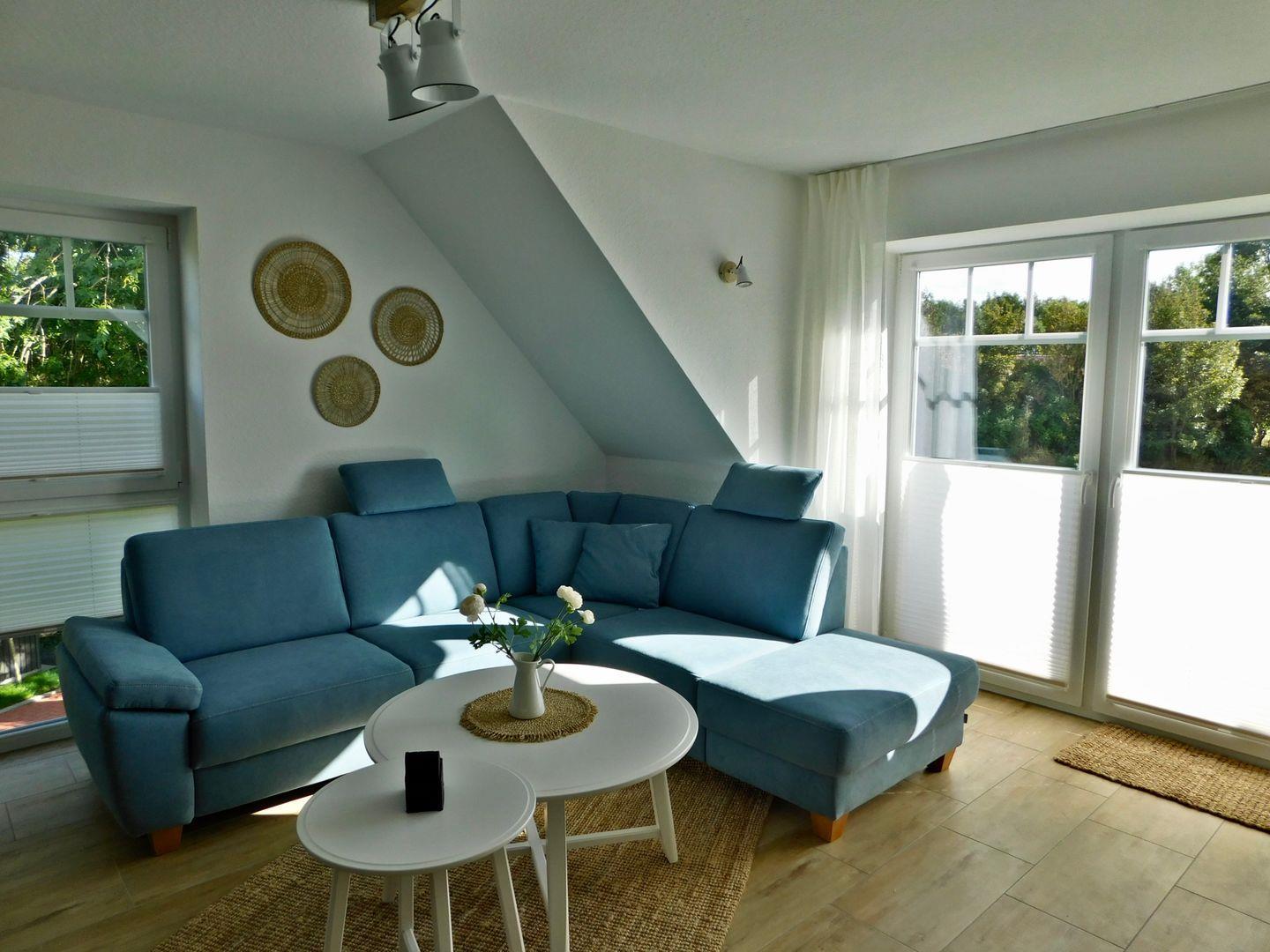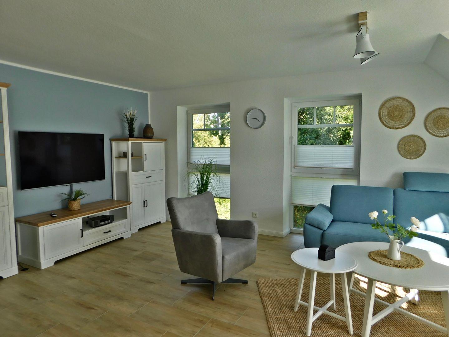 Qualitativ hochwertig und stilvoll eingerichtet lässt diese Unterkunft keine Wünsche offen und verwöhnt seine Gäste auch an ungemütlichen nordischen Tagen mit einem prasselnden Kaminfeuer und Fußbodenheizung, welche die Wohnlandschaft zur absoluten Wohlfühloase machen. Kuscheln Sie sich ein auf dem gemütlichen, großen Sofa in L-Form und beobachten Sie das stürmische Wetter nach einem ausgiebigen Spaziergang bei steifer Brise mit einer Tasse Ostfriesentee durch die großen Fenster.