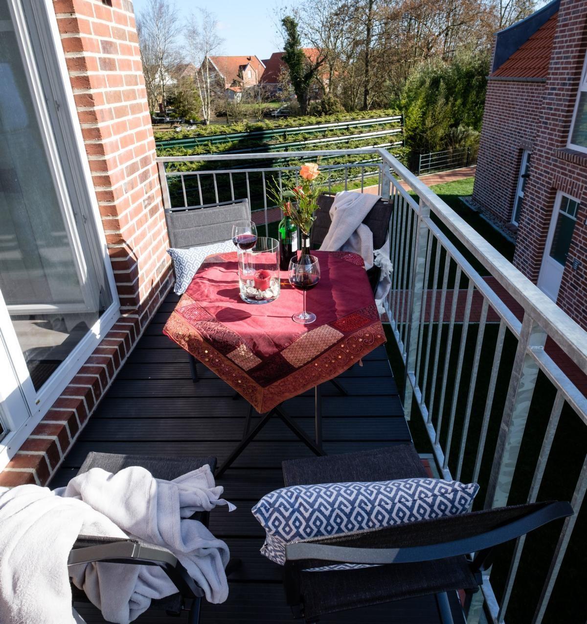 Gemütliche 80qm Ferienwohnung in Greetsiel mit Balkon, Kamin und separatem Gäste-WC, ideal für Erholung am Wasser.