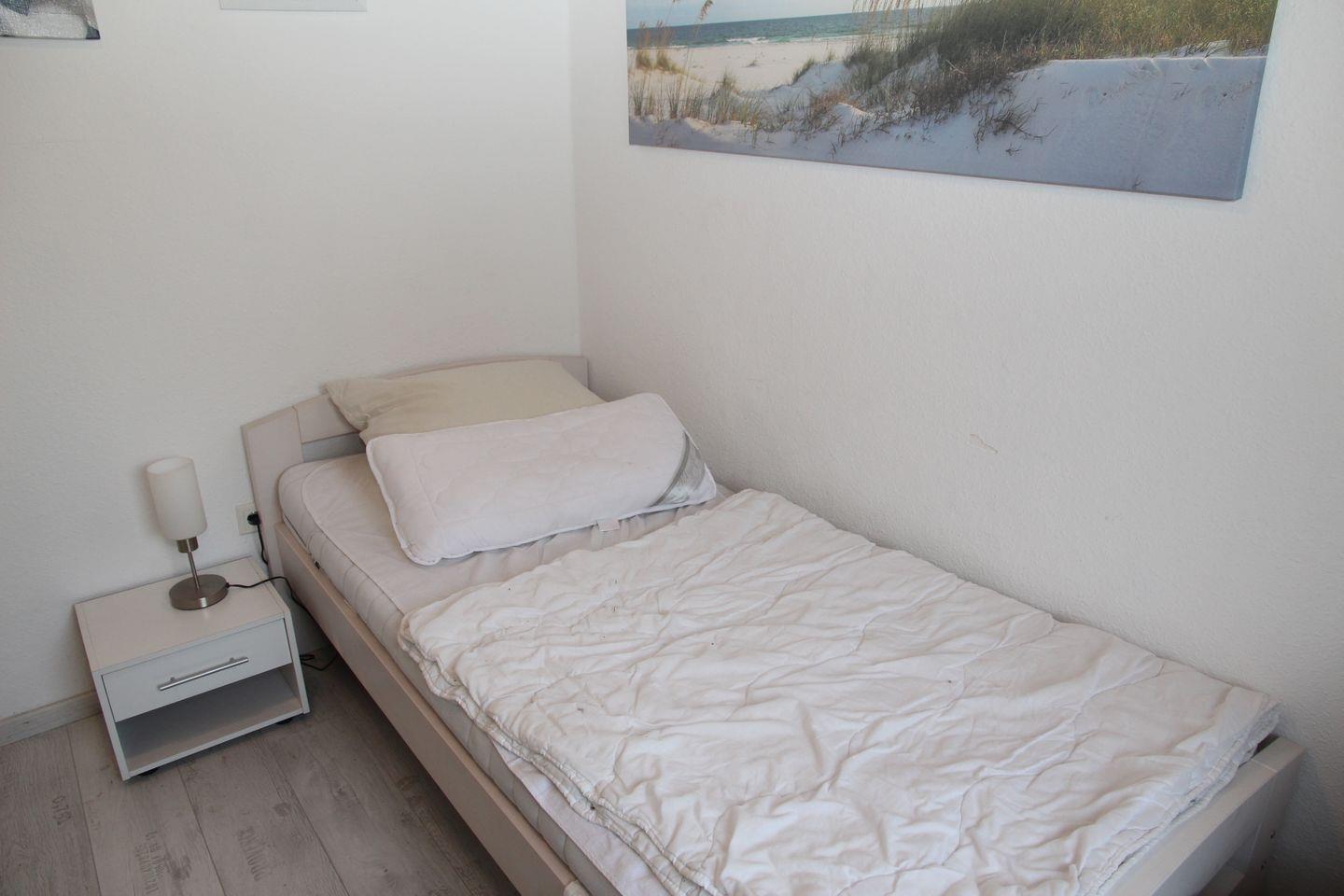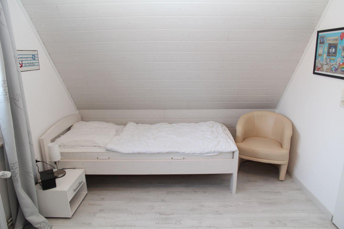 Im Obergeschoss finden Sie zwei weitere Schlafzimmer: Eines mit zwei Einzelbetten und Kleiderschrank, das andere mit einem Doppelbett und Kommode. Hier ist auch noch ein Babybett vorhanden. Ein zusätzliches Gäste-WC mit Waschbecken finden Sie ebenfalls in der oberen Etage.