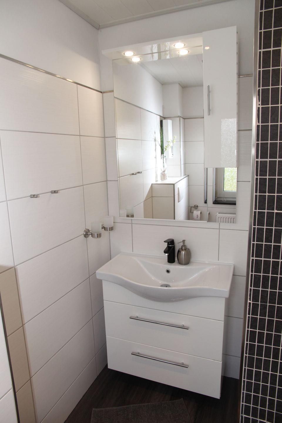 Ebenfalls im Erdgeschoss befindet sich das vollwertige Badezimmer mit ebenerdiger Dusche und ein Schlafzimmer mit einem Einzelbett.