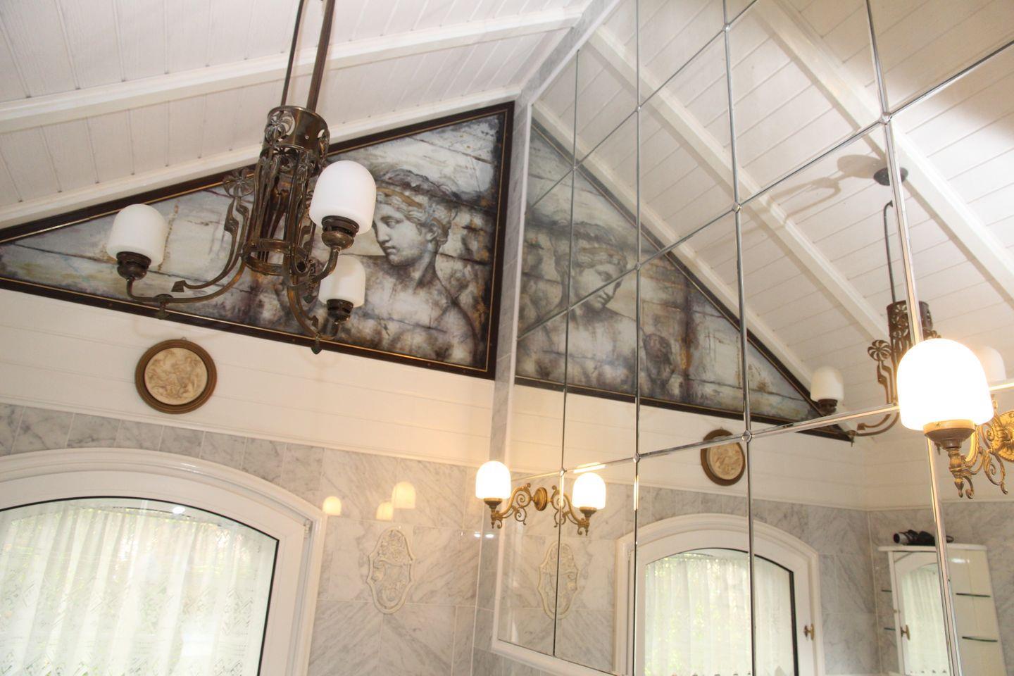 Über das ganze Haus verteilen sich an den Wänden tolle Gemälde und historische Verzierungen.
