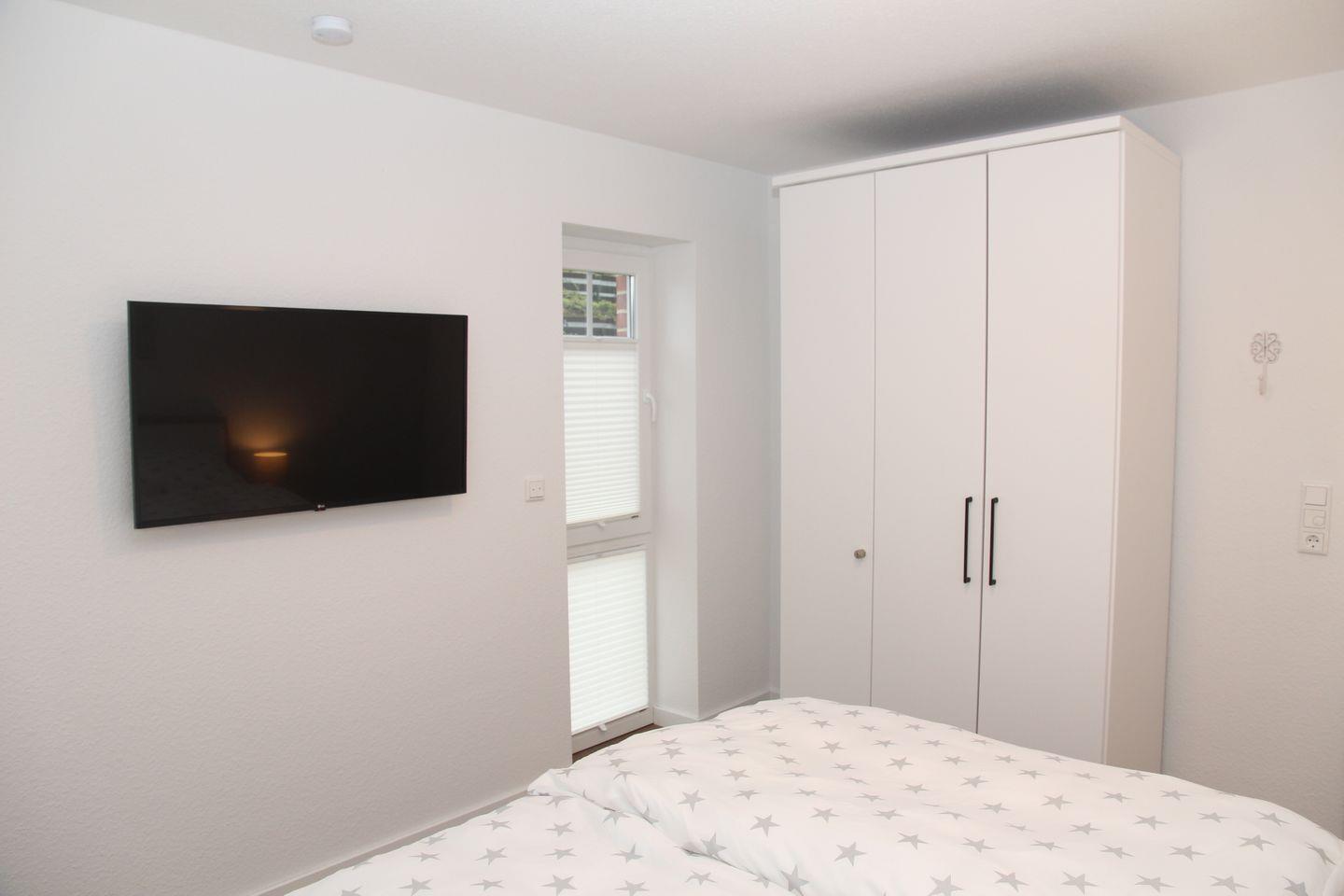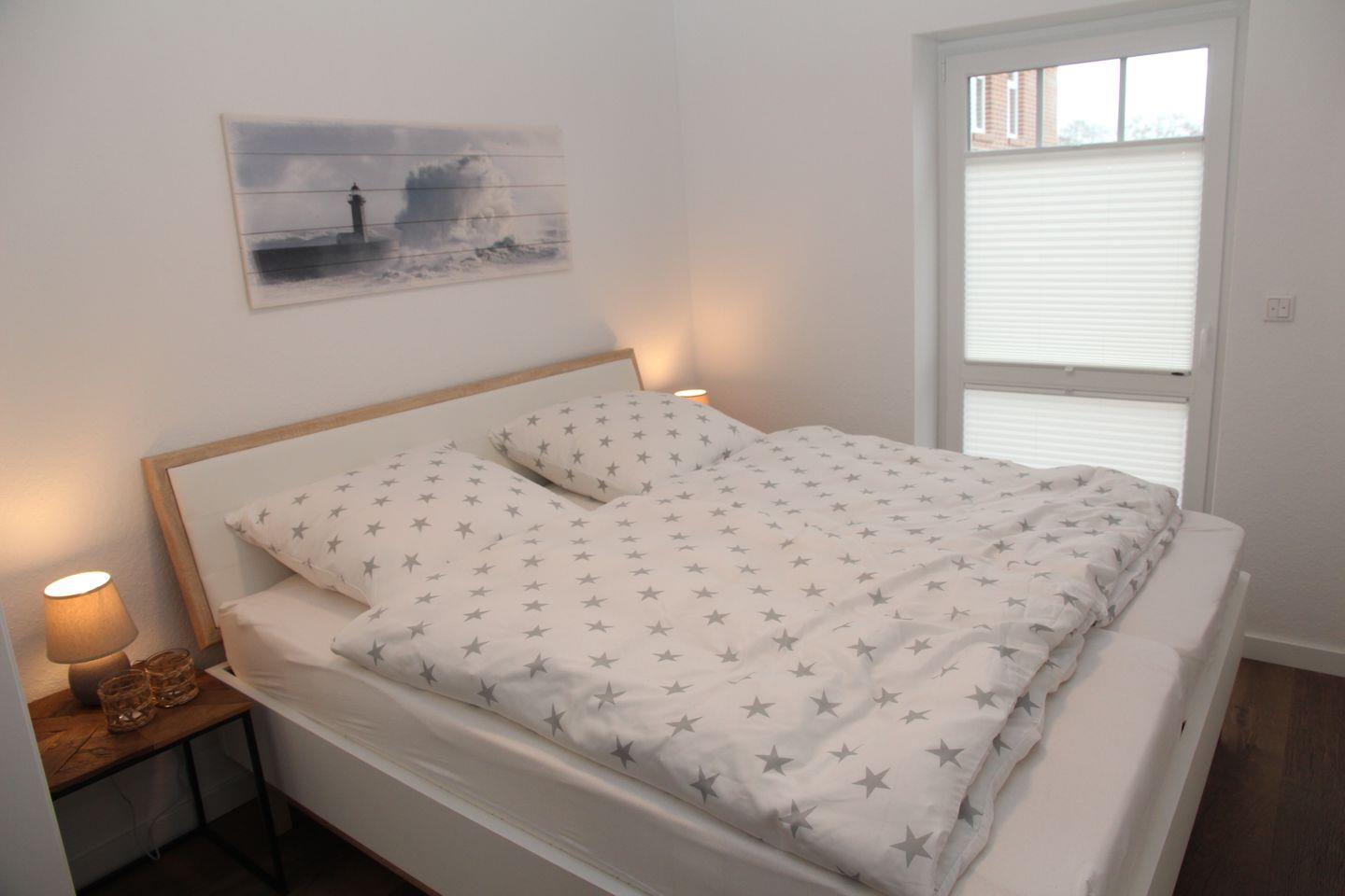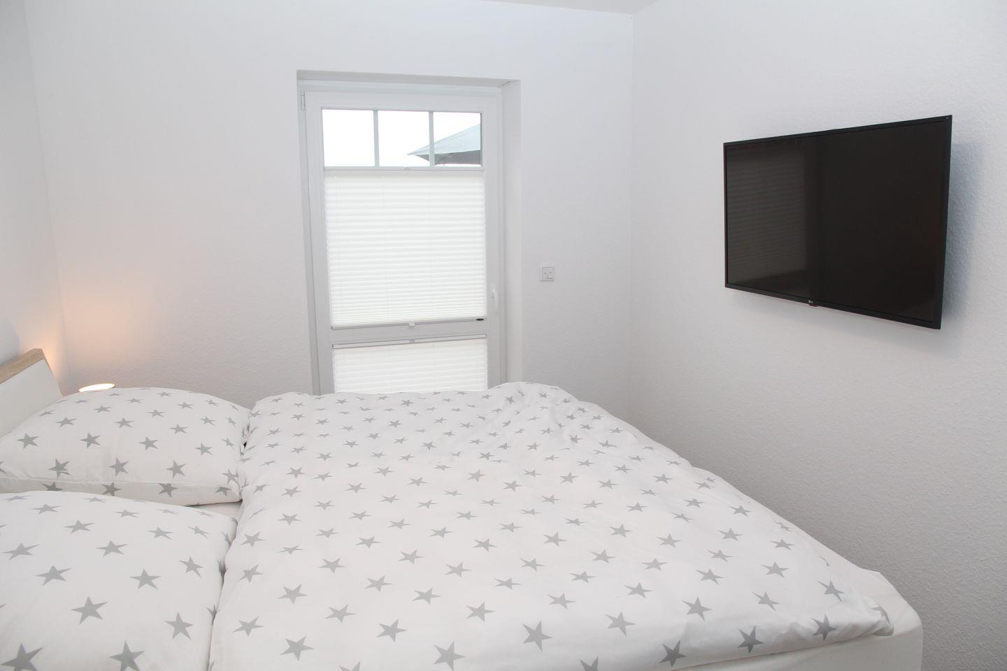 Sie verfügt über 2 Schlafzimmer mit jeweils einem Doppelbett Kleiderschrank. Die Fußböden sind mit einem Vinylboden in Holzoptik ausgestattet und verfügen über eine angenehme Fußbodenheizung. Die Fenster lassen sich alle abdunkeln, in jedem Schlafzimmer befindet sich ein Smart-TV.