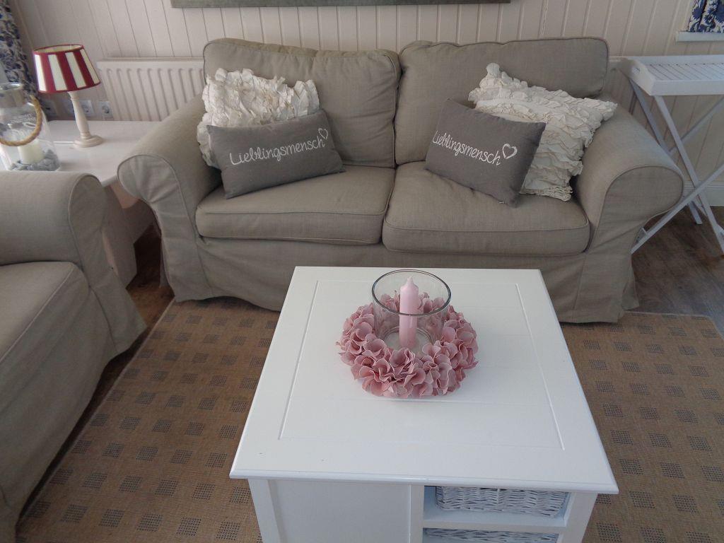 Dat lüttje Huus bietet im Erdgeschoss einen Wohn- und Essbereich, der mit einer gemütlichen Couchgarnitur und einem Flachbild-TV ausgestattet ist.