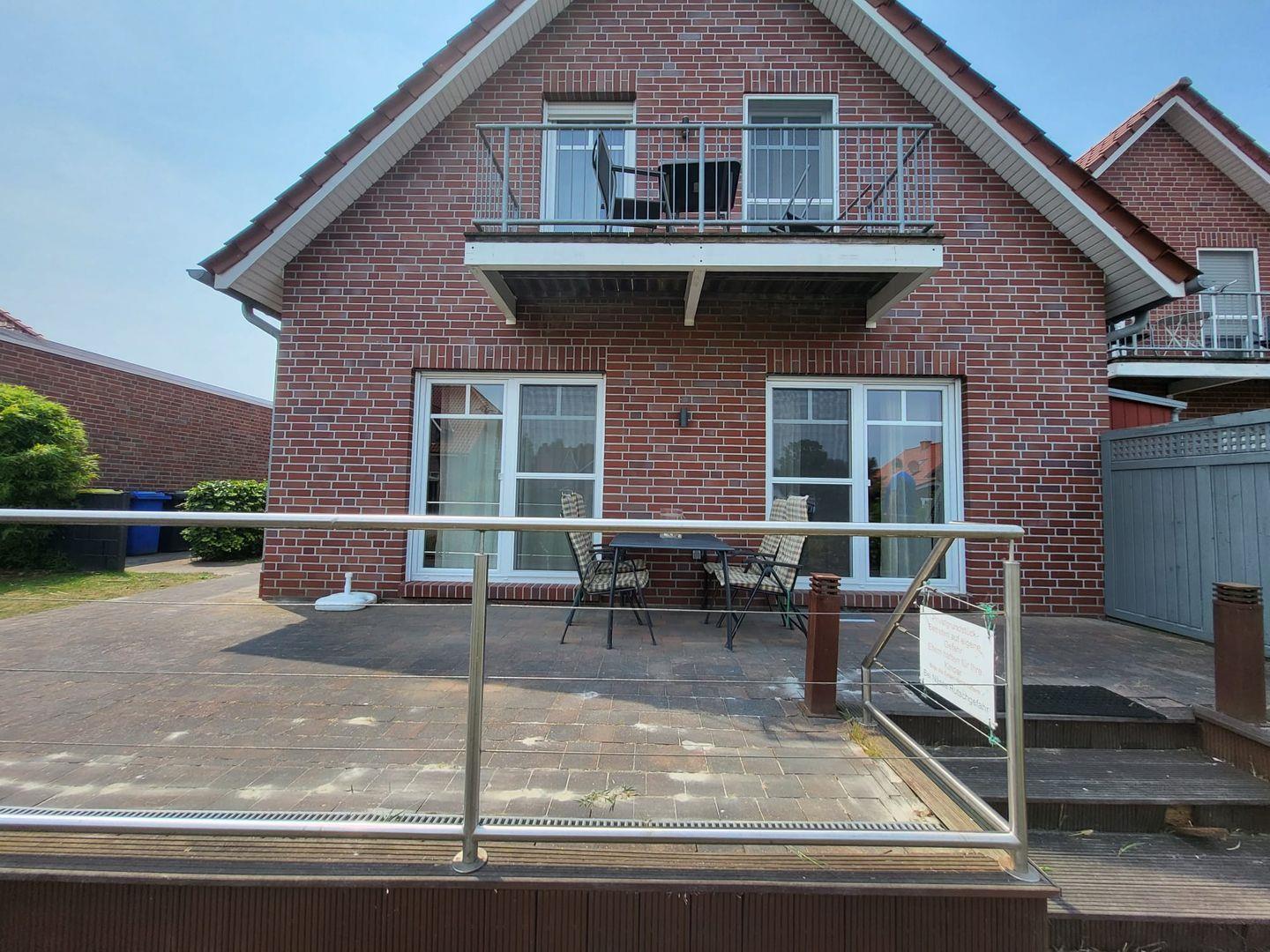 Moderne Ferienwohnung mit Balkon und Ruderboot in Greetsiel an den Grachten.