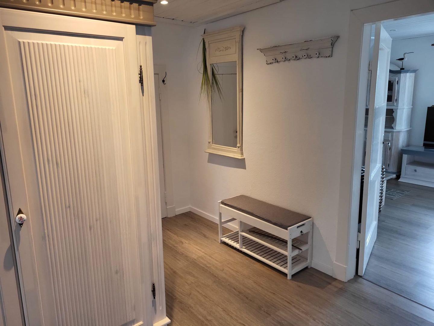 Zentrale ruhige Lage im Ortskern Parkplatz am Objekt, nur 3 Gehminuten zum Greetsieler Hafen und in den Ortskern, Balkon mit Blick auf die Gracht Oberwohnung mit Terrasse Abstellschuppen für Fahrräder 2020 komplett renoviert