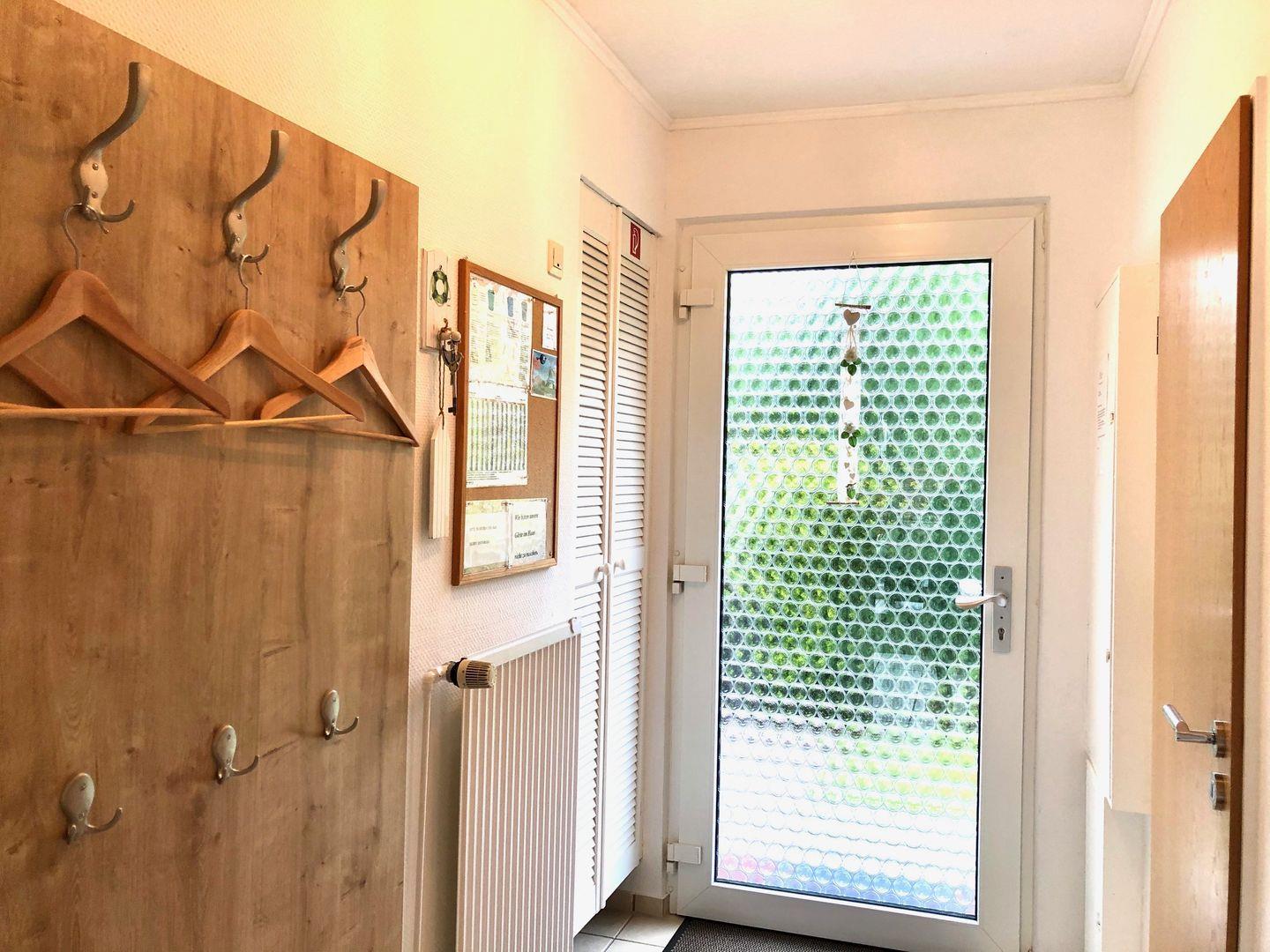 Kommen Sie herein! Durch den Flur gelangen Sie in den großzügigen Wohn-/Essbereich. Die neuwertige Couchgarnitur ist sehr gemütlich und lädt zum Entspannen ein. Die große Fensterfront lässt in den Garten und auf die Terrasse blicken. Der große Flachbild-Fernseher rundet gemütliche kuschelige Abende ab. Am großen Fenster befindet sich der Essbereich . Hier kann sich die ganze Familie zum Klönen und gemeinsamen Essen versammeln. Die neuwertige Küche ist offen gehalten und lässt das Herz des Hobbykochs höher schlagen. Mikrowelle, Geschirrspüler, Kaffeepad- und Filterkaffeemaschine usw. stehen hier bereit. Ebenfalls ist eine Waschmaschine vorhanden. Im unterem Bereich finden Sie noch ein helles Gäste-WC.