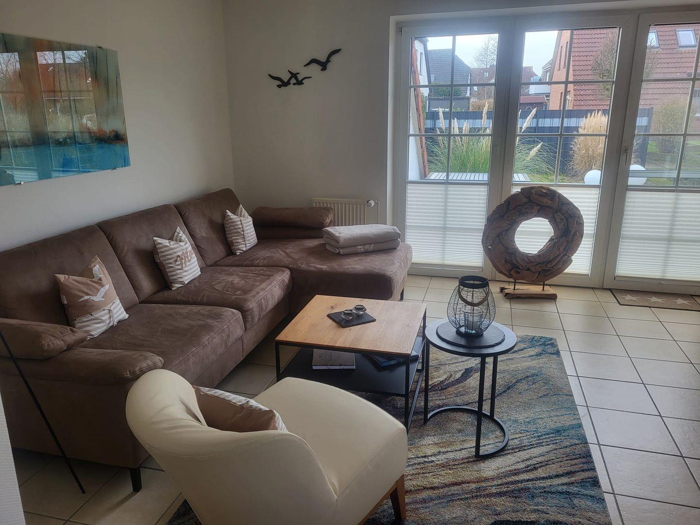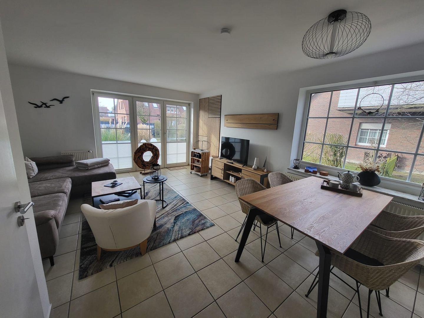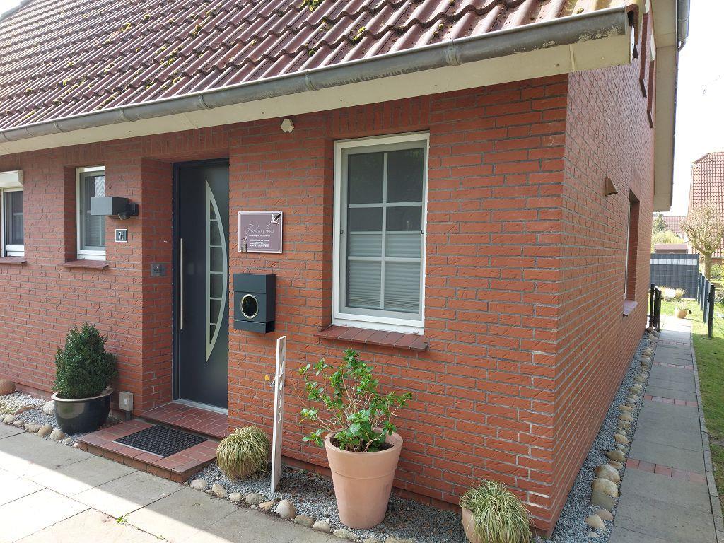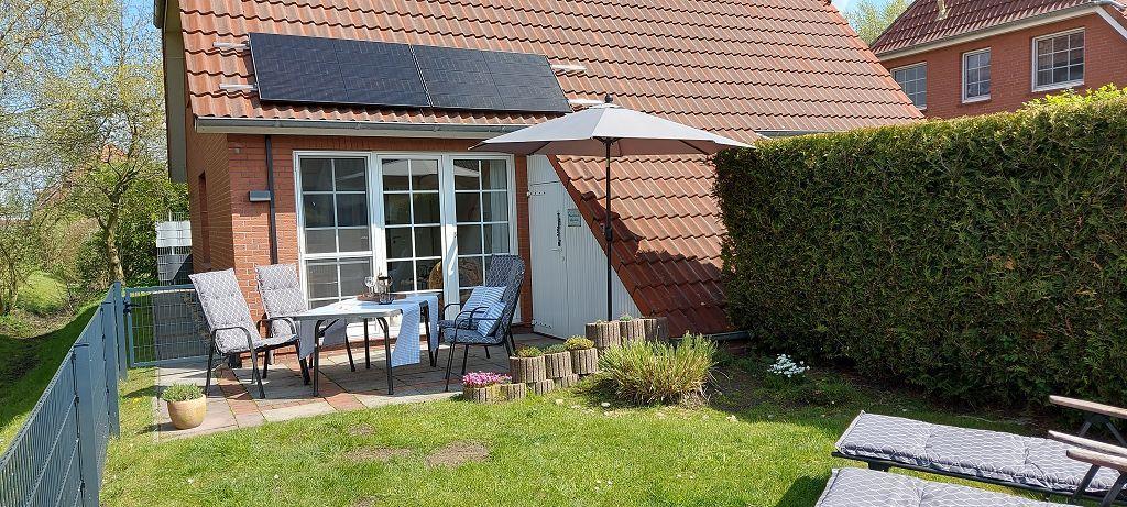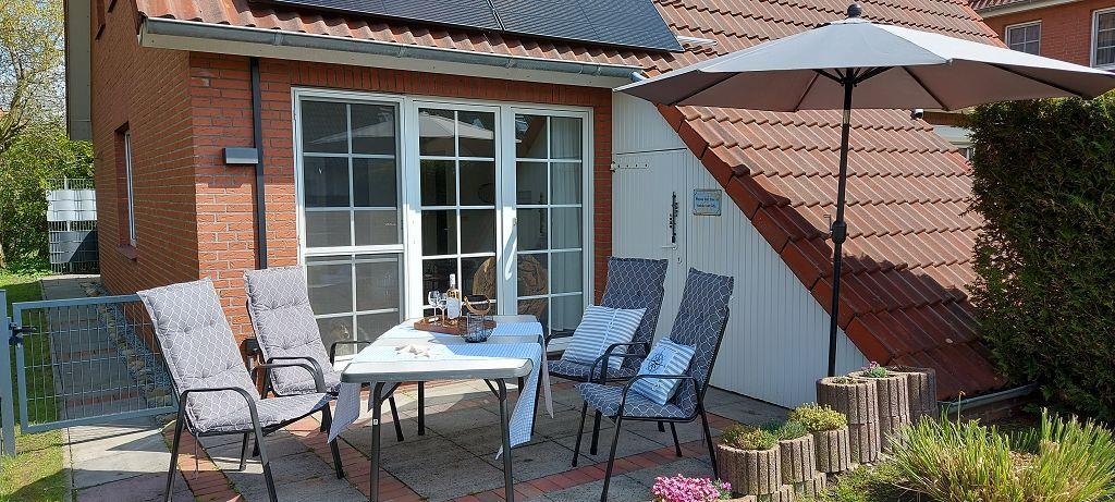 Modernes Ferienhaus Joana mit Terrasse und Garten in Greetsiel, ideal für Familien und Hunde.
