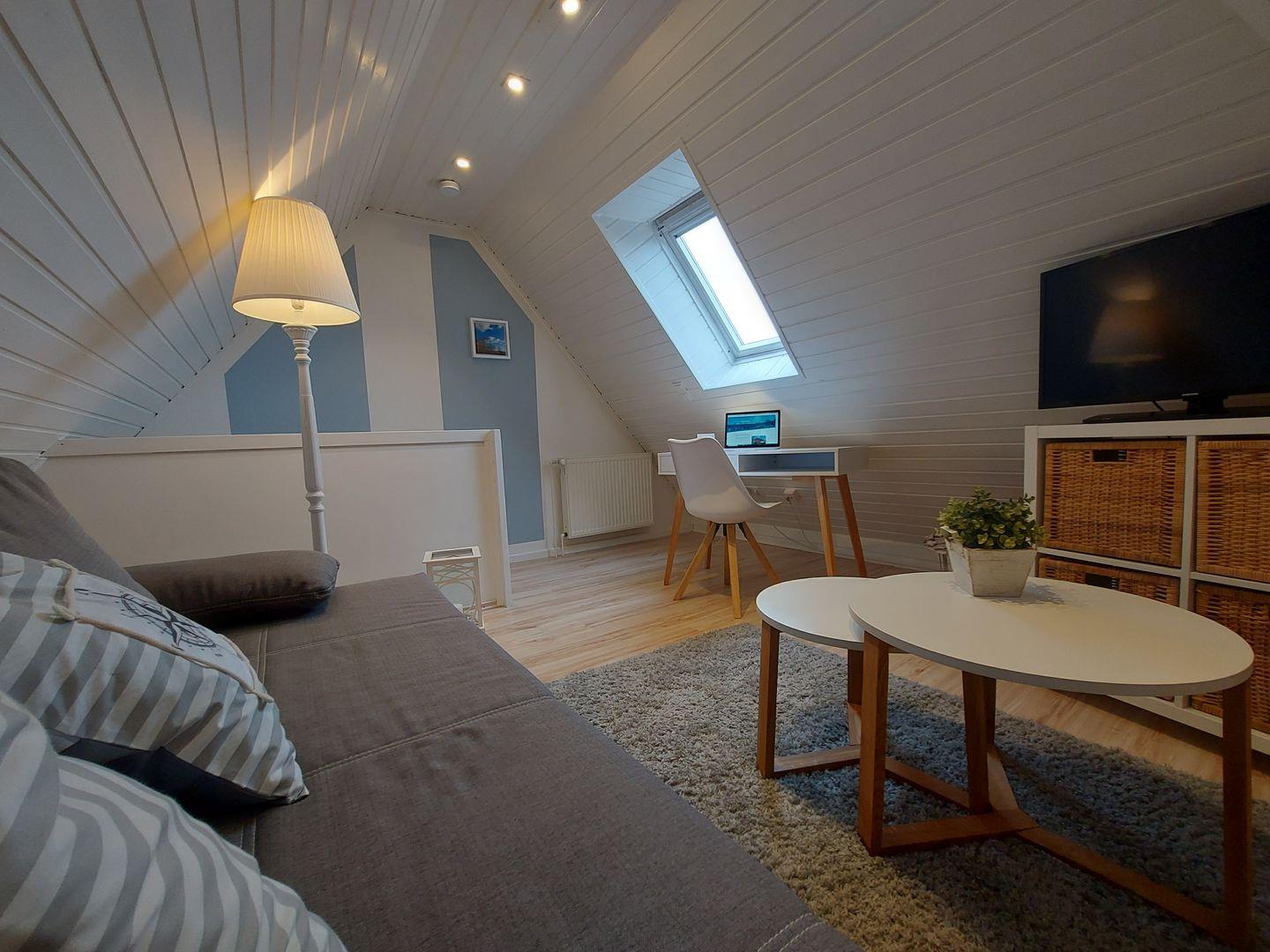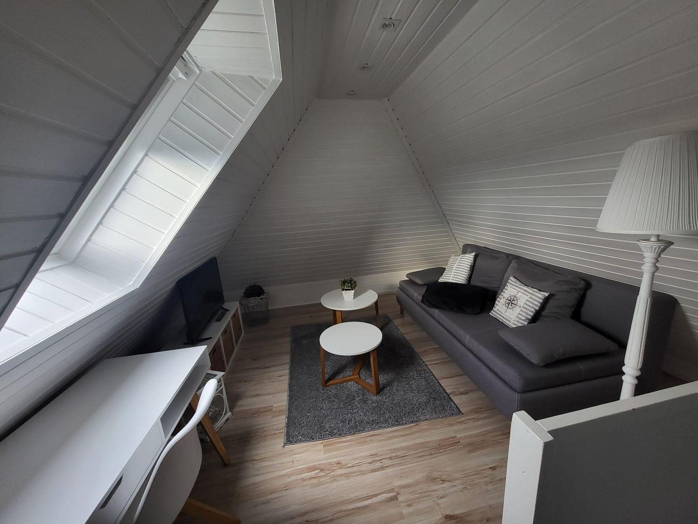 Das I-Tüpfelchen ist das ausgebaute Dachgeschoß, das noch ein Rückzugsort zum Relaxen mit einem Schlafsofa (für max. 2 Personen) und Flachbild-TV bietet. Den Raum erreichen Sie über das 2. Schlafzimmer.