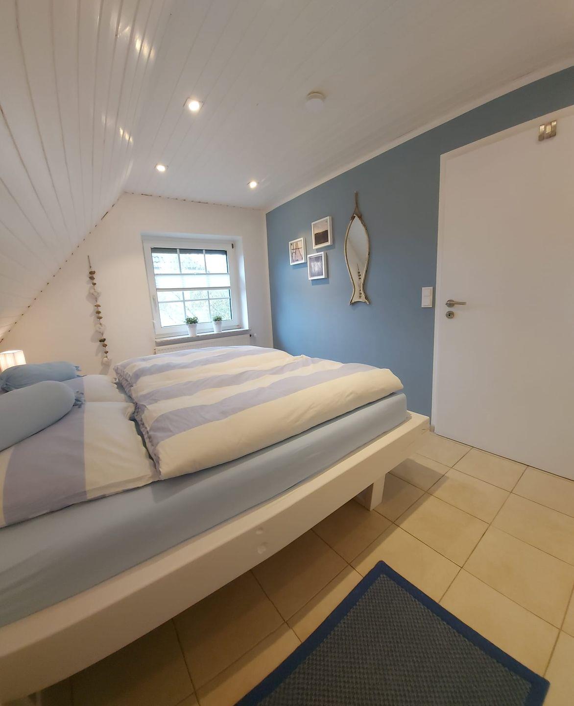 Im Obergeschoß stehen 2 großzügige Schlafräume zur Verfügung. Durch die gemütlichen Möbel finden Sie schnell in den Schlaf und träumen schön. Das erste Schlafzimmer ist mit einem Doppelbett, das zweite mit 2 Einzelbetten ausgestattet. Auf dieser Etage liegt auch das weiß geflieste Badezimmer mit ebenerdiger Dusche, WC, großem Spiegel und Handwaschbecken.
