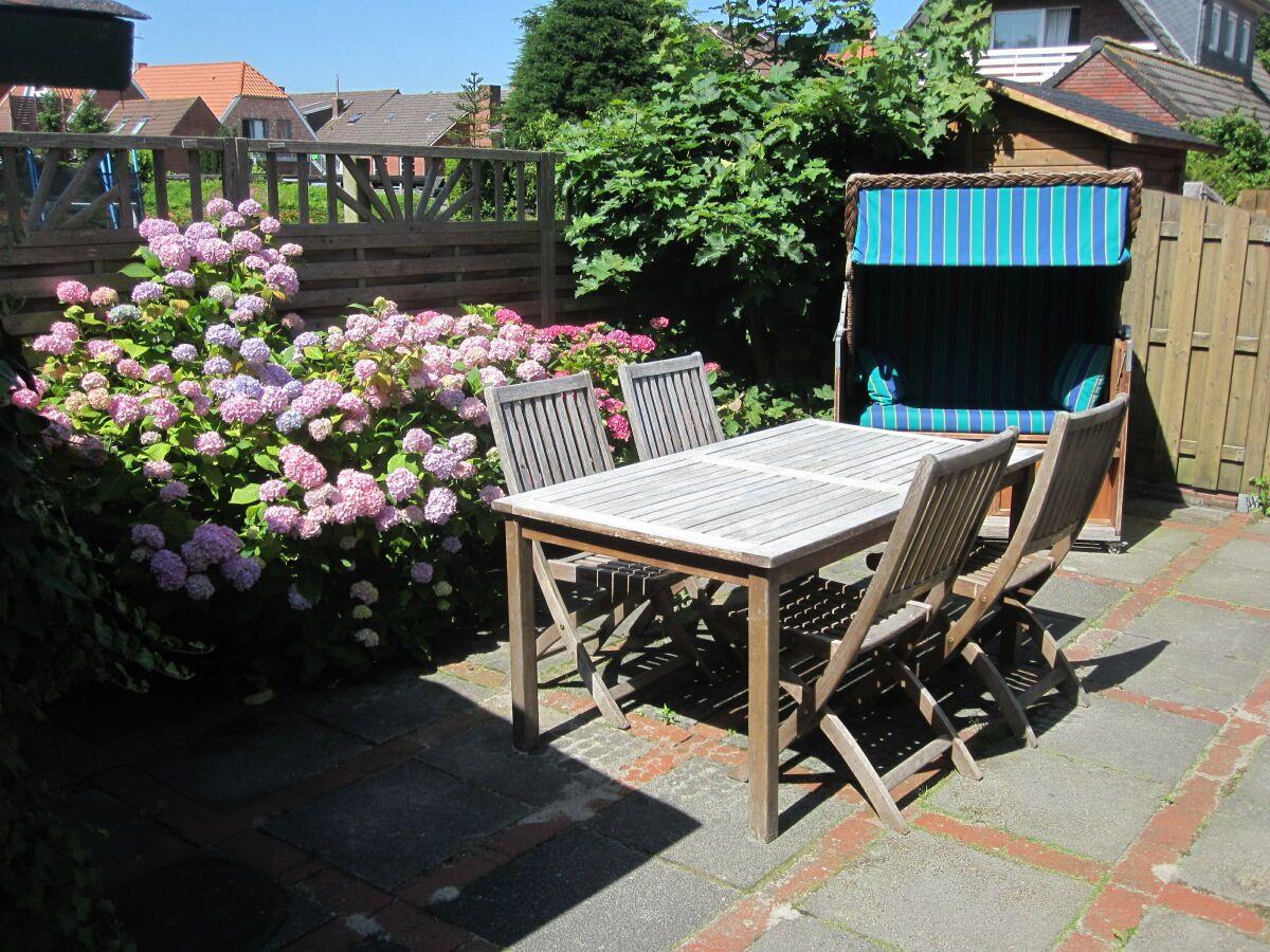 Die Terrasse mit modernen Gartenmöbeln und einem Strandkorb komplettieren Ihren Urlaub. Entspannung und Ruhe können Sie hier genießen. Ebenfalls kann hier ungestört und windgeschützt gefrühstückt, gegessen, gegrillt (bitte einen Grill mitbringen) oder Ostfriesentee getrunken werden. Ein Gartenhaus für mitgebrachte Fahrräder ist vorhanden. Ein Parkplatz befindet sich direkt vor dem Haus. WLAN ist verfügbar! Haustiere sind hier nicht erlaubt! Wünschen Sie mehr Leben um sich? 30 Schritte und Sie befinden sich mittendrin!
