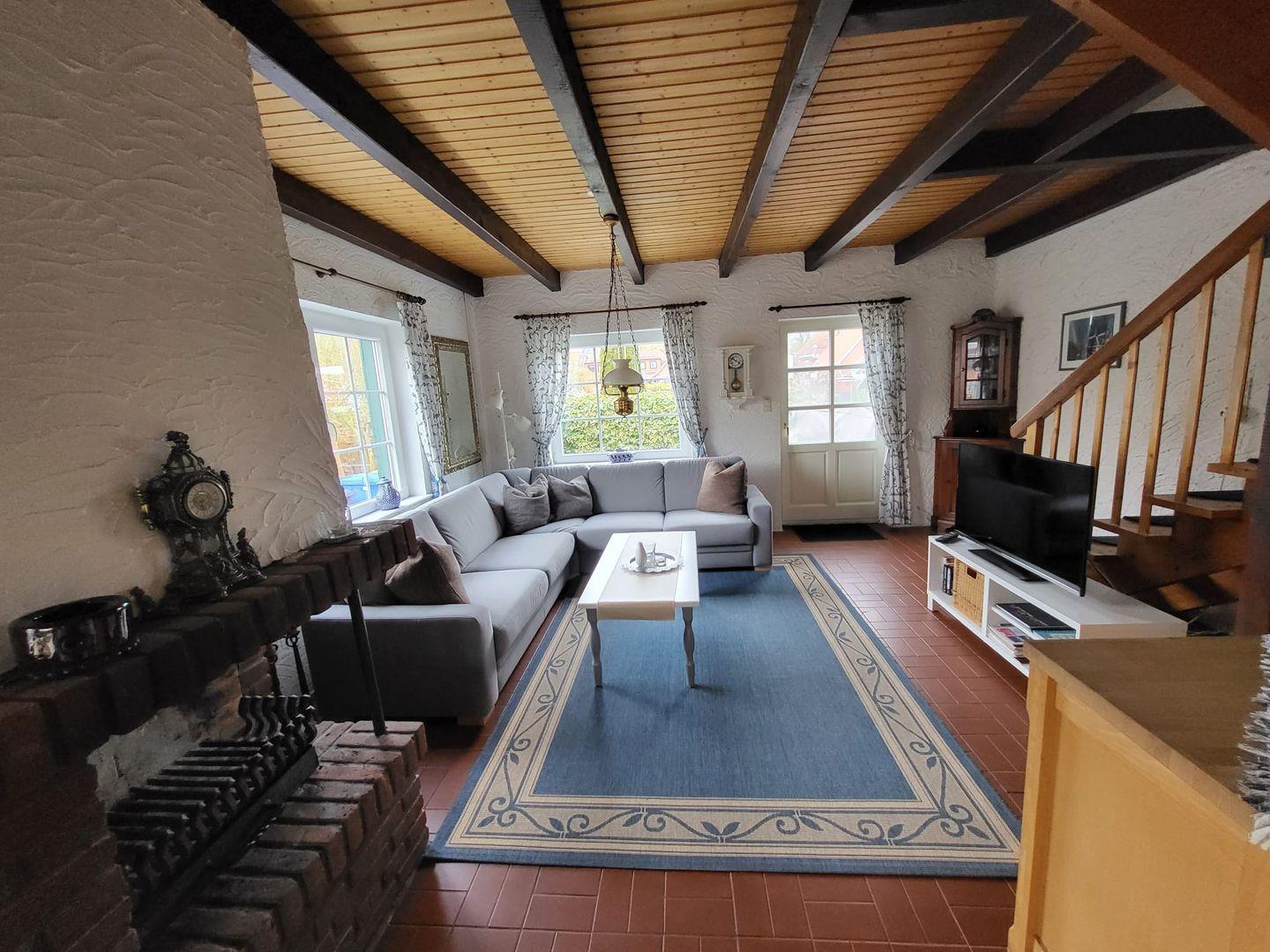 Kommen Sie herein! Sie werden sich gleich wohlfühlen. Das Haus ist liebevoll mit vielen Details eingerichtet. In der vollausgestatteten Küche mit u. a. Geschirrspüler, Kühlschrank mit Gefrierfach, Mikrowelle, Küchenmaschine usw. können Speisen zubereitet und dann am gemütlichen Esstisch verzehrt werden.