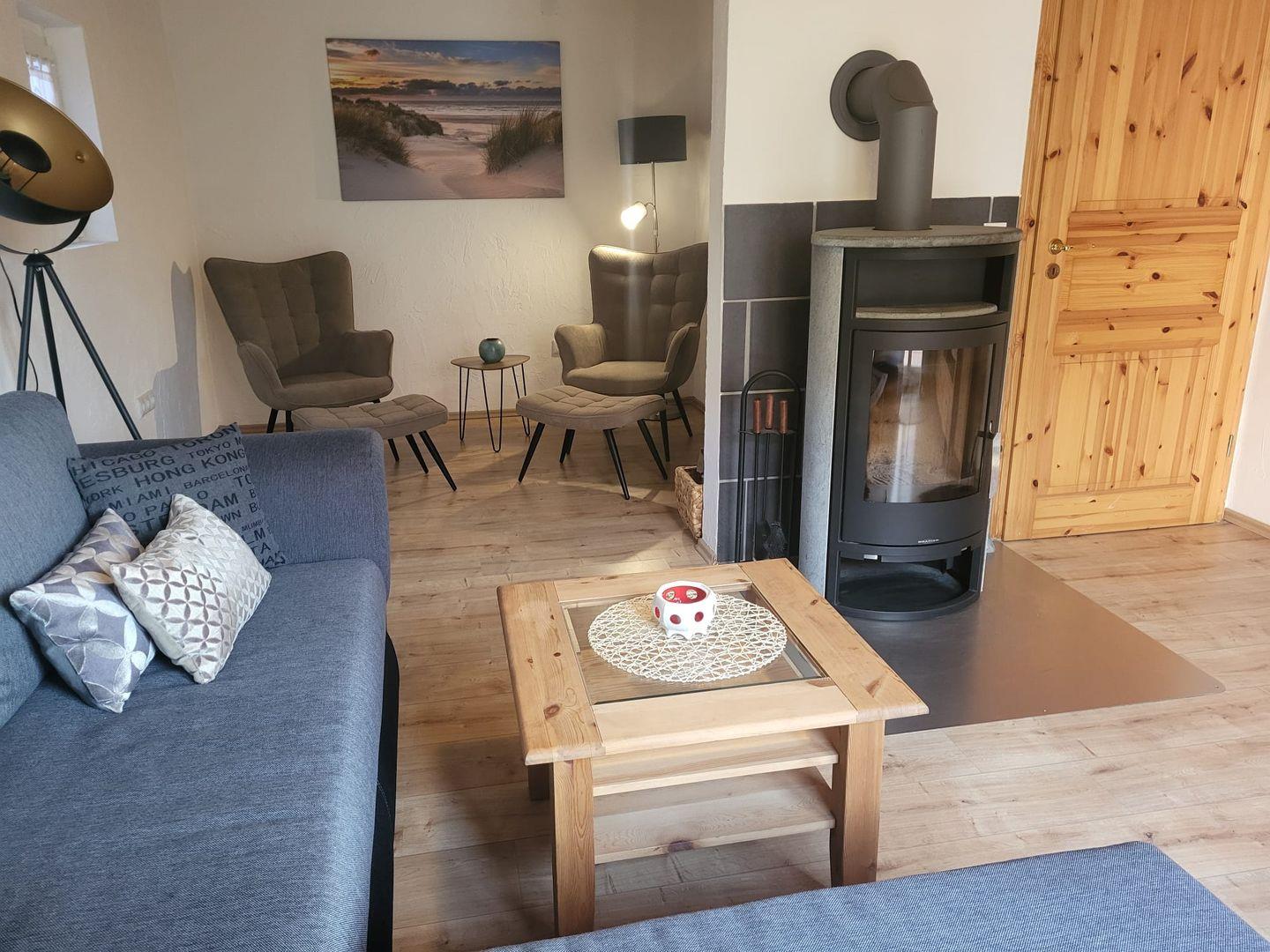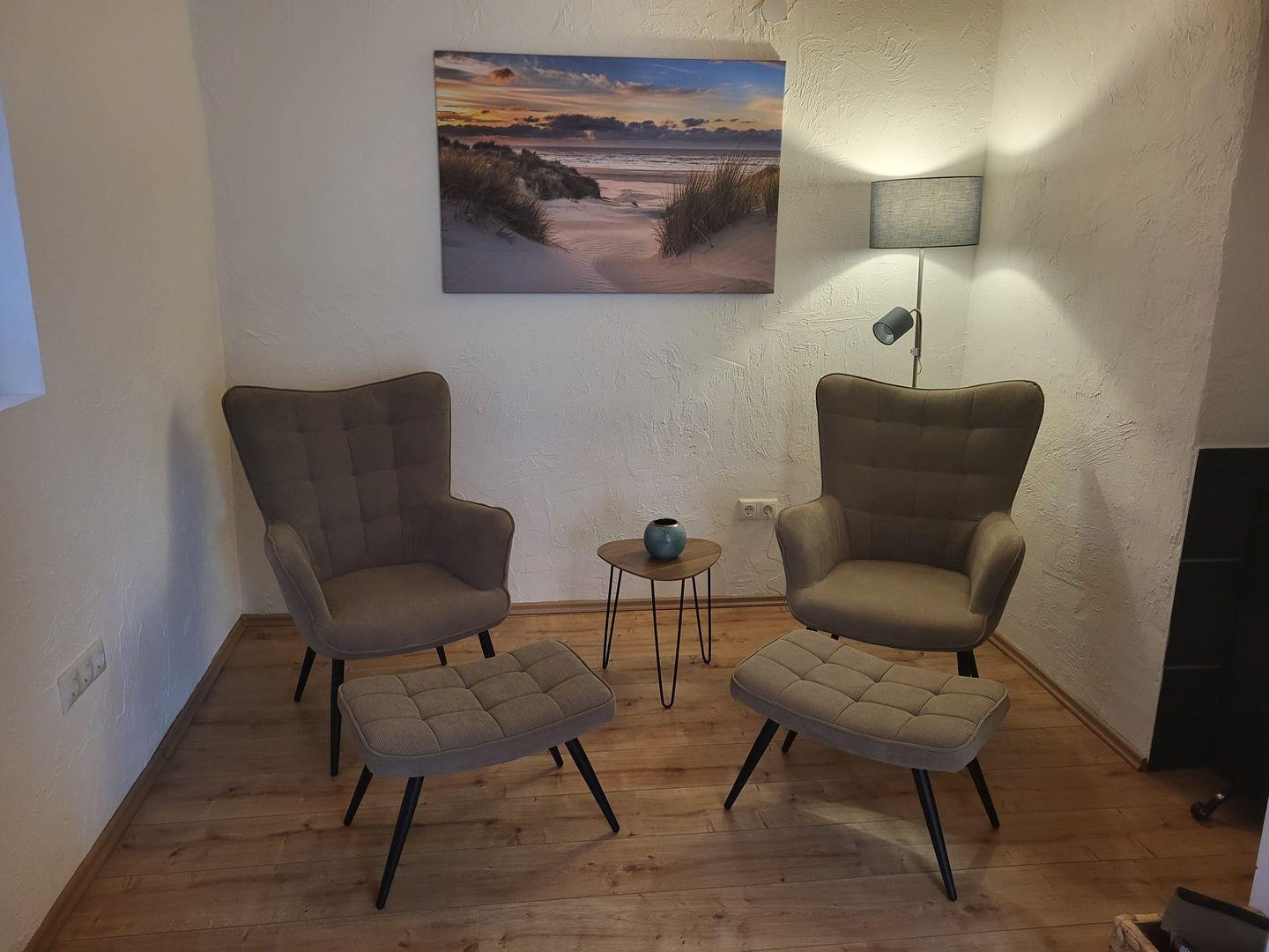 Das Ferienhaus Seebär befindet sich in einem ruhigen Ortsteil, nur wenige Schritte von den Greetsieler Zwillingsmühlen entfernt. Treten Sie ein! 2025 wurde es teilweise renoviert. Vom Flur gelangen Sie direkt in das gemütliche Wohnzimmer, in dem ein Kamin zu behaglichen Abenden auf der Couch einlädt. Die modernen Stühle mit Fußhocker bieten ihnen einen ruhigen Platz zum Lesen oder Teetrinken.