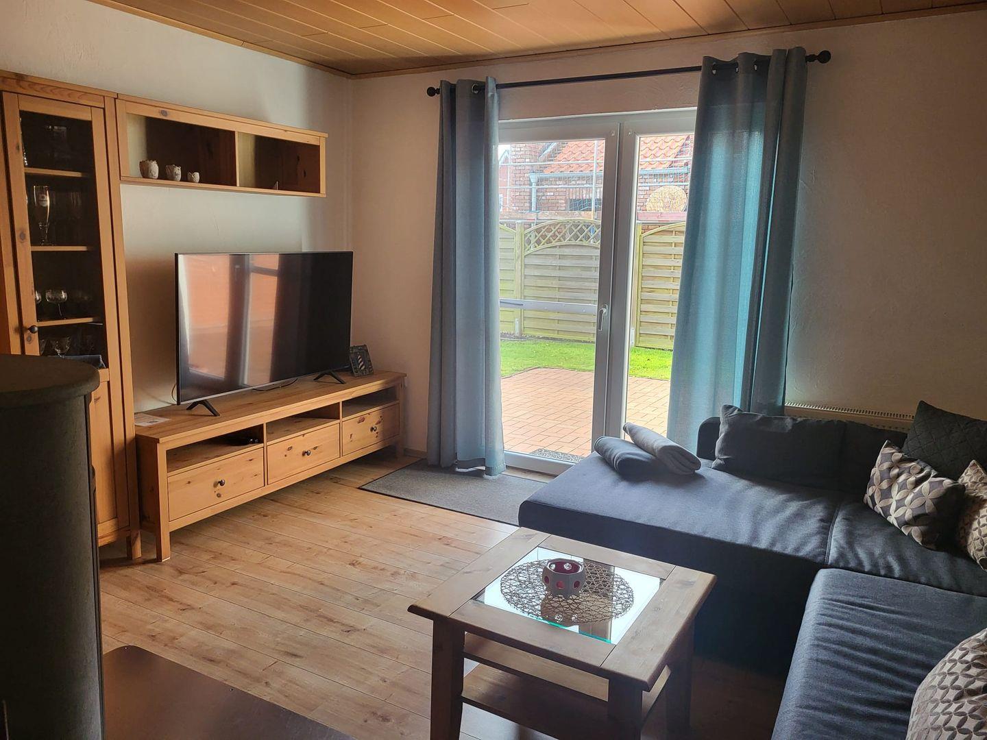 Haus Seebär in Greetsiel bietet gemütlichen Komfort mit Kamin und großem Garten für entspannte Ferien.