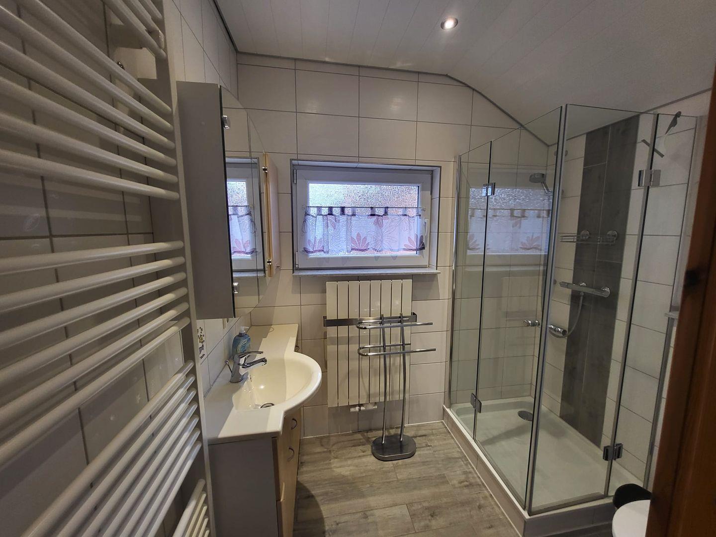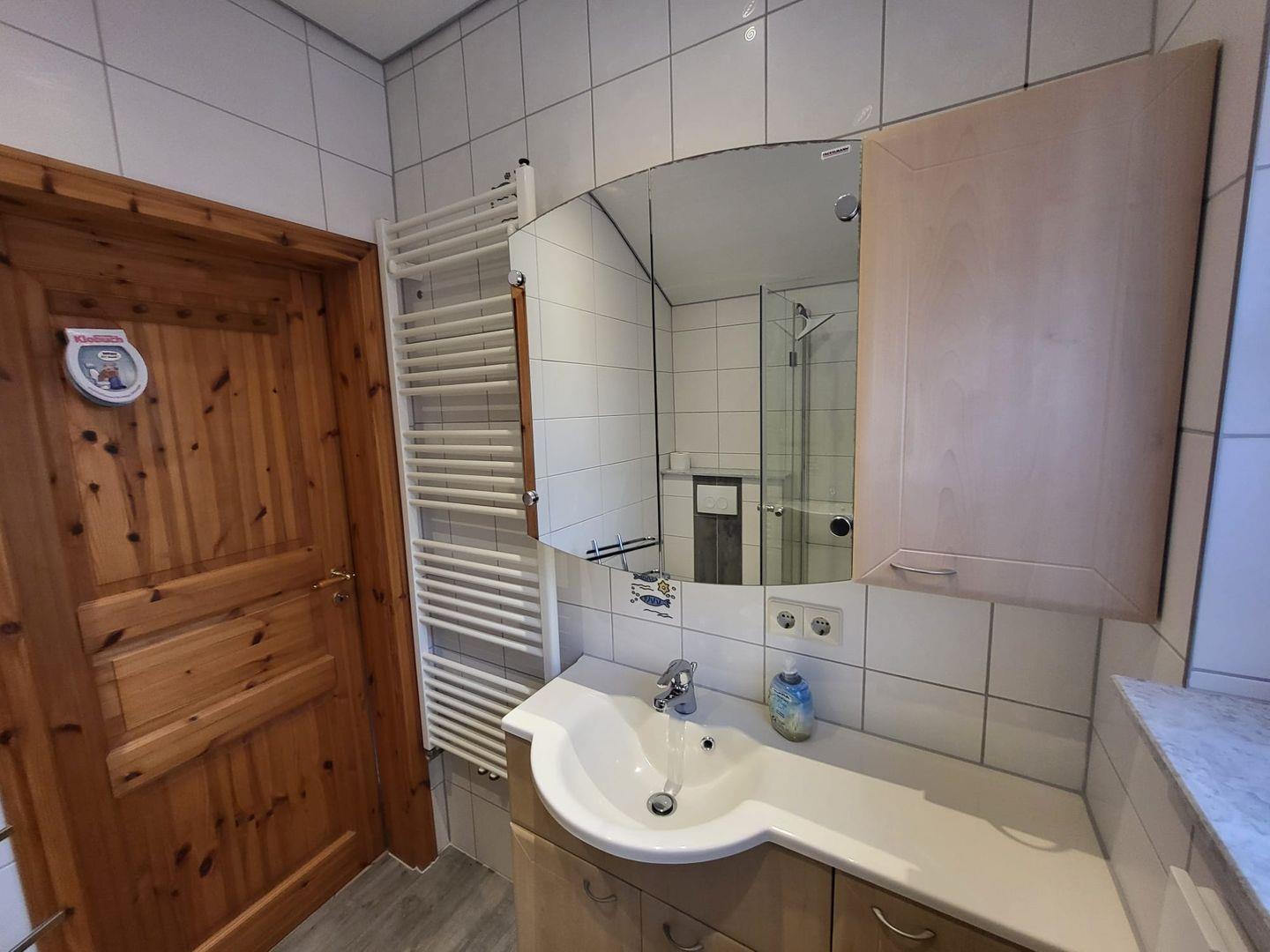Im Erdgeschoss befinden sich zudem ein helles Badezimmer mit Dusche und WC sowie ein zusätzliches Gäste-WC.
