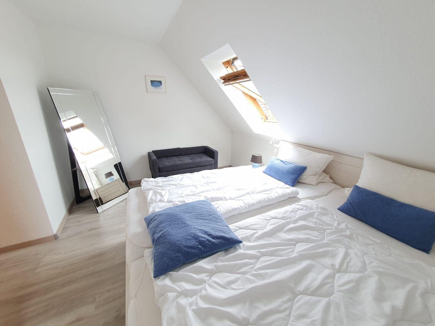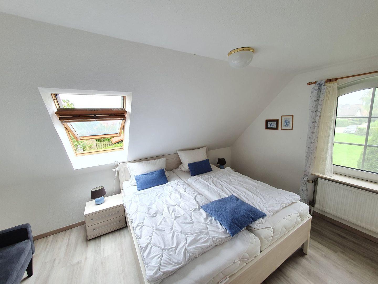 Das Doppelhaushälfte Uns Moi Hus wurde 2018 komplett renoviert. Kommen Sie herein! Der Eingangsbereich bietet einen kleinen Flur mit Garderobe. Von dort gelangen Sie in den hellen Wohn- und Essbereich, wo eine gemütliche Couch sowie ein Flat-TV zum Verweilen einladen. In der offenen Küche (mit Geschirrspülmaschine, Mikrowelle, Cerankochfeld, Backofen und Kühlschrank mit separaten Gefrierfach) lassen sich leckere Speisen zubereiten. Der Esstisch am Fenster lädt zu gemütlichen Abendessen und Klönabende ein. Im Obergeschoss befinden sich 2 geräumige Schlafzimmer, eines mit Doppelbett (1,80 m) sowie eines mit zwei Einzelbetten. Hier liegt auch das helle Bad mit Dusche und WC. Ein separates Gäste-WC ist im Erdgeschoss vorzufinden. In den Wohn- und Schlafräumen ist hochwertiges PVC-Laminat verlegt und an den Fenstern befinden sich Insektenschutzgitter. Außenrollos sind vorhanden. Vom Wohnzimmer aus erreichen Sie die sonnige Terrasse, die mit Gartenmöbeln ausgestattet ist. Hier kann man wunderbar relaxen und sich den frischen Wind um die Nase wehen lassen. Ein angrenzender Abstellbereich bietet Platz für mitgebrachte Fahrräder. WLAN ist verfügbar! Ein eigener Parkplatz befindet sich direkt am Haus ist.