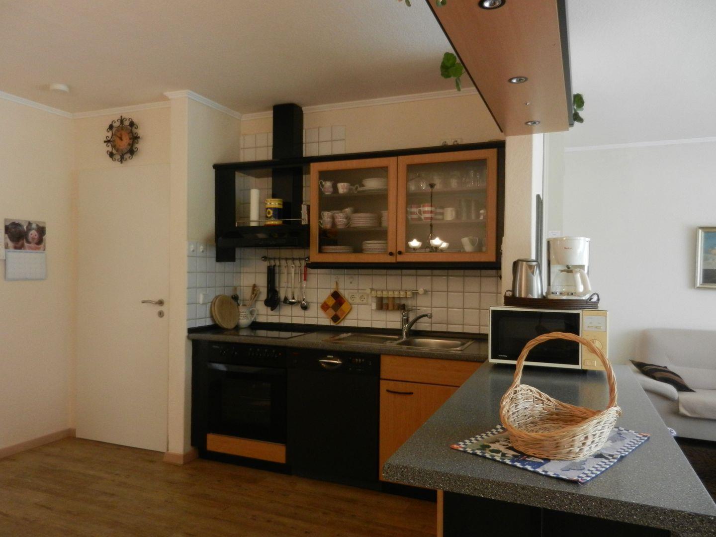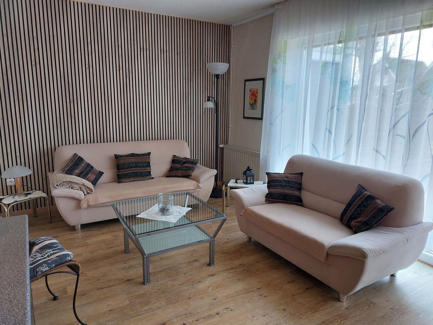 Der Walmdachbungalow (Haushälfte) lädt zu einem entspannten Urlaub ein. Kommen Sie herein! Vom Flur aus gelangen Sie in den großen Wohn- und Essbereich. Die vollausgestattete Küche mit u. a. Baldachin, Mikrowelle und Geschirrspüler lässt das Herz des Hobbykochs höher schlagen. Die zubereiteten Speisen können am Esstisch serviert werden. Der Raum ist hell und freundlich. Durch das große Panoramafenster gucken Sie direkt in den großzügigen Garten, der eingezäunt ist. Auf der Terrasse können Sie die frische Nordseeluft schnuppern und die Seele baumeln lassen. Der Wohnbereich mit heller Couch sorgt für Gemütlichkeit und Entspannung. Gleich nebenan finden Sie das Schlafzimmer mit Doppelbett. Im EG liegt ebenfalls das helle Duschbad. Ein kleiner Raum mit Schreibtisch und Spielzeug für die Kleinen rundet das Erdgeschoß ab. Von hier gelangen Sie nach oben ins Atelier. Der gemütliche große Schlaf-/Wohnbereich mit einem Doppelbett und Kinderbett und einer Couchgarnitur mit Sat-TV lädt zum Relaxen ein. Im Erdgeschoß befinden sich Außenrollos. In der Garage können mitgebrachte Fahrräder sicher untergebracht werden. Eine Waschmaschine steht zur Verfügung. WLAN ist verfügbar. Ein Parkplatz befindet sich am Haus. Ihr Hund ist herzlich willkommen!