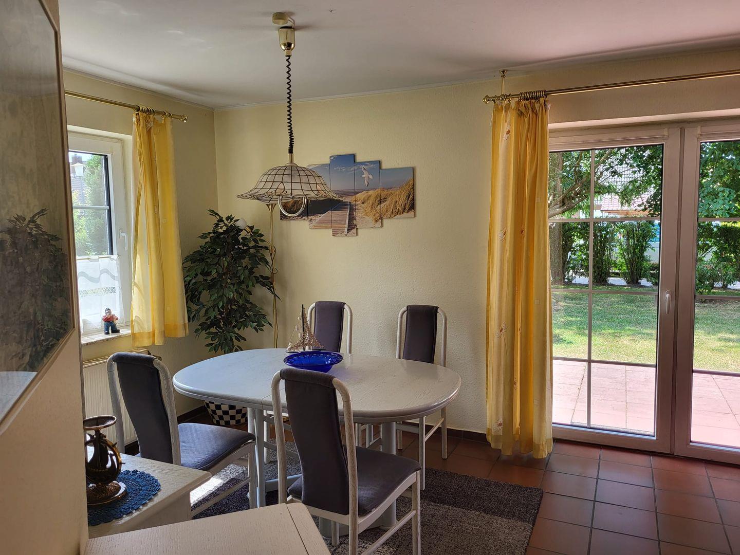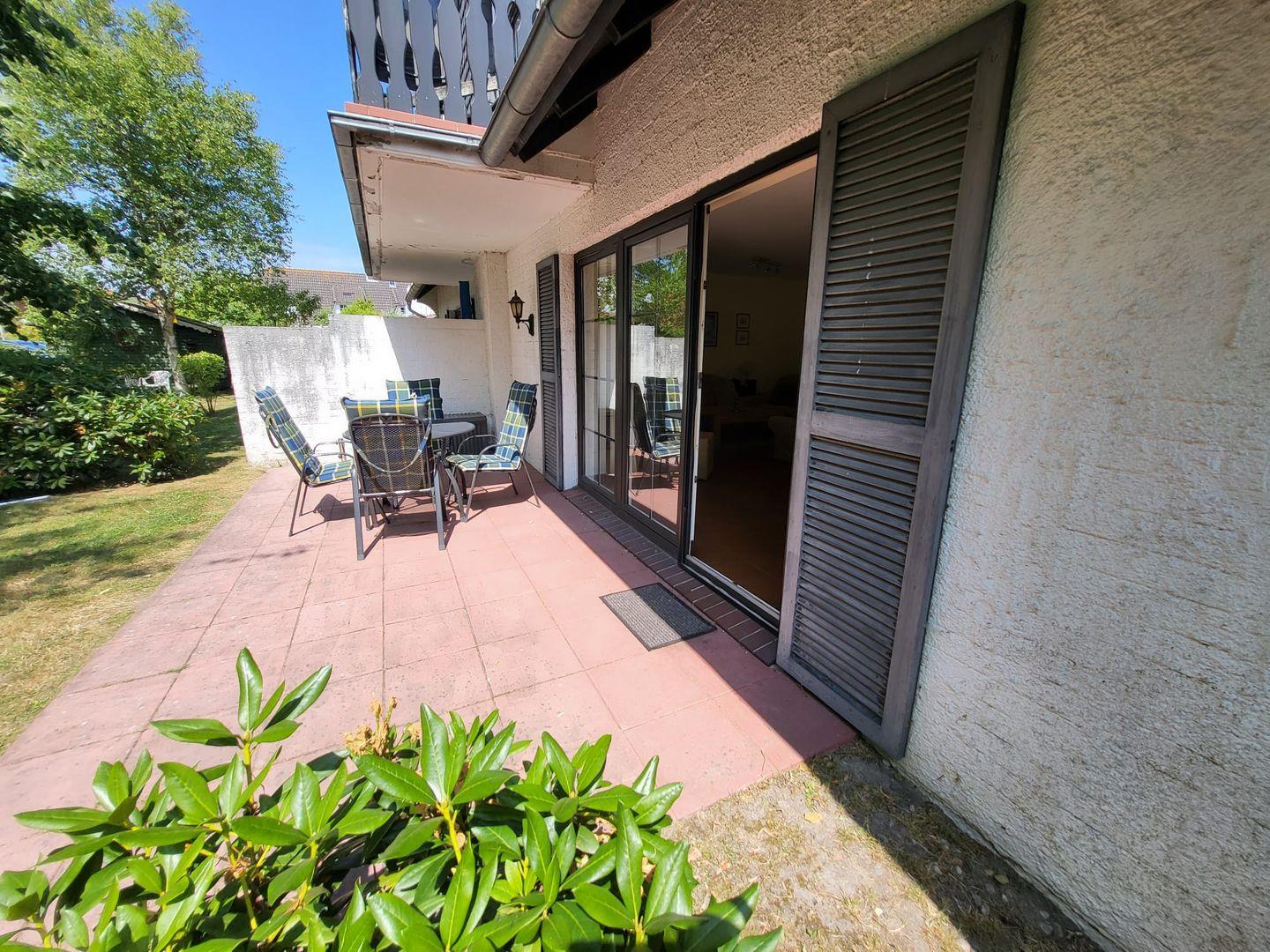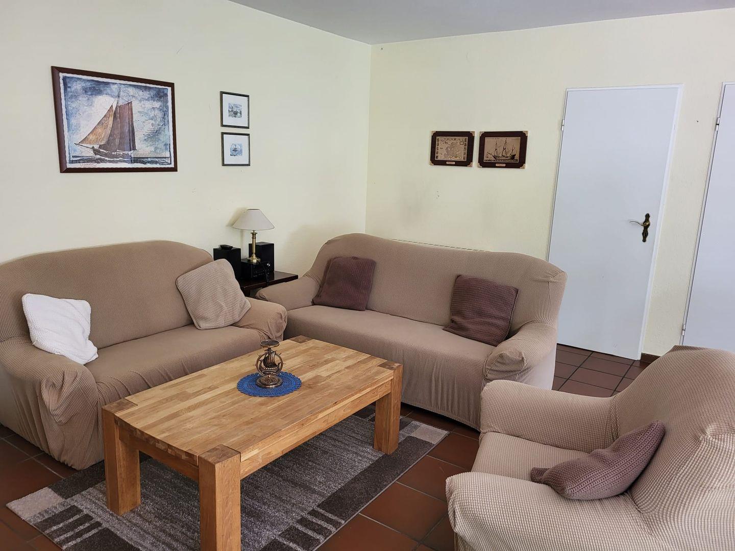 Die Erdgeschosswohnung bietet mit zwei Schlafzimmern Platz für bis zu 4 Personen + Hund. Sie befindet sich in ruhiger Lage im Seezungenweg.
