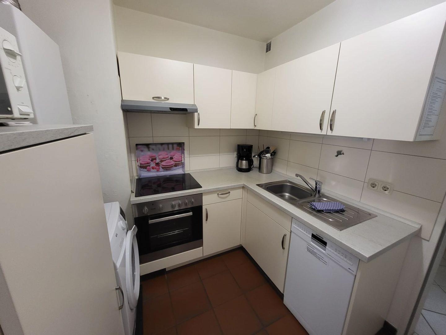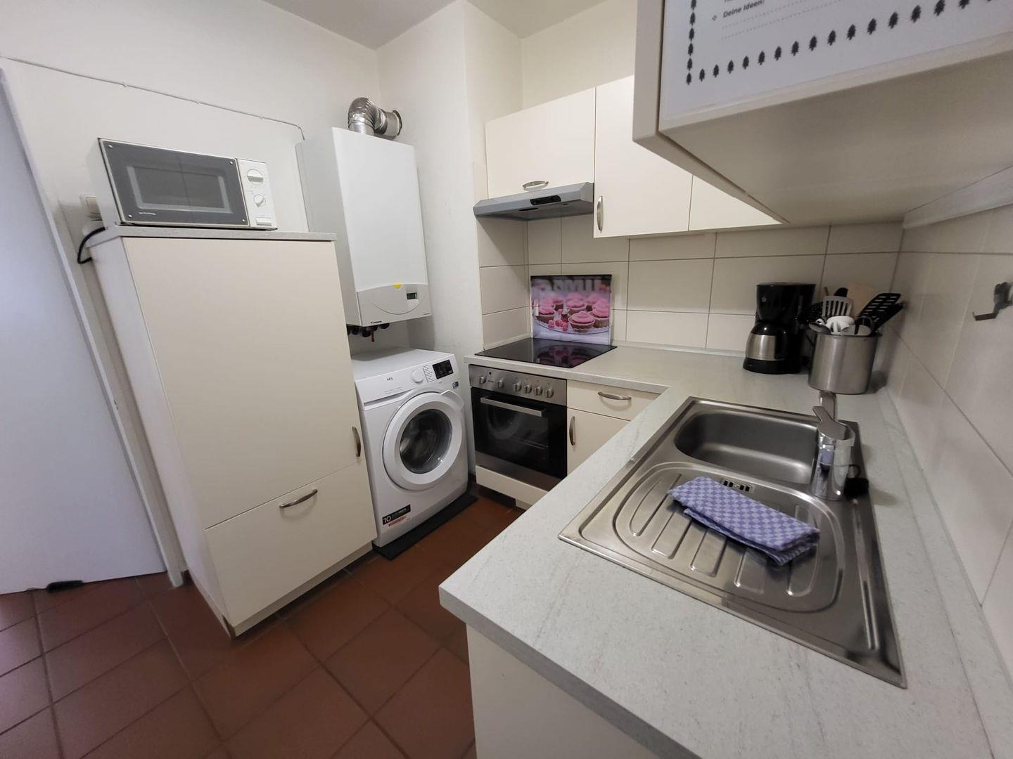 Am großen Esstisch kann gemeinsam gegessen oder bei einer Tasse Ostfriesentee geklönt werden. 2 Schlafzimmer mit jeweils Doppelbetten laden zu ruhigen Nächten ein. In der Küche mit Mikrowelle, Geschirrspüler sowie Kühlschrank mit Gefrierfach kann sich der Hobbykoch austoben. Das Tageslichtbad verfügt über Dusche und WC.