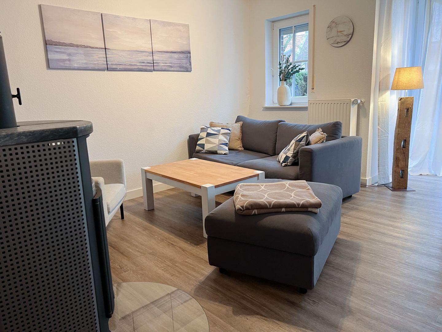 Ferienwohnung Deichmöwe in Greetsiel mit Sauna, Kamin und Garten für erholsame Tage an der Nordseeküste.