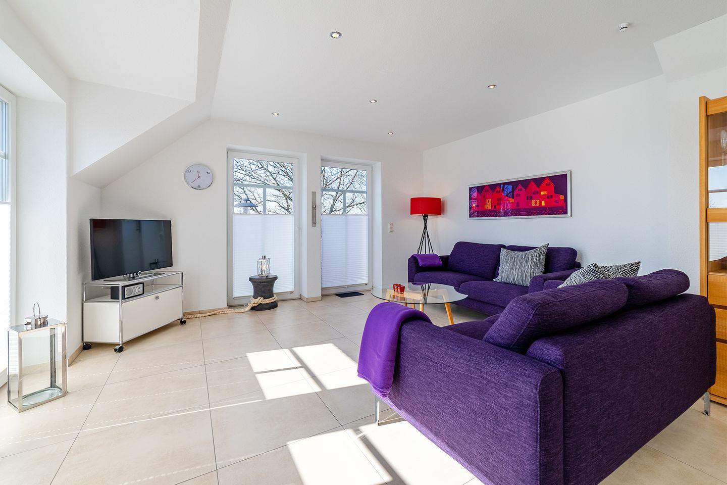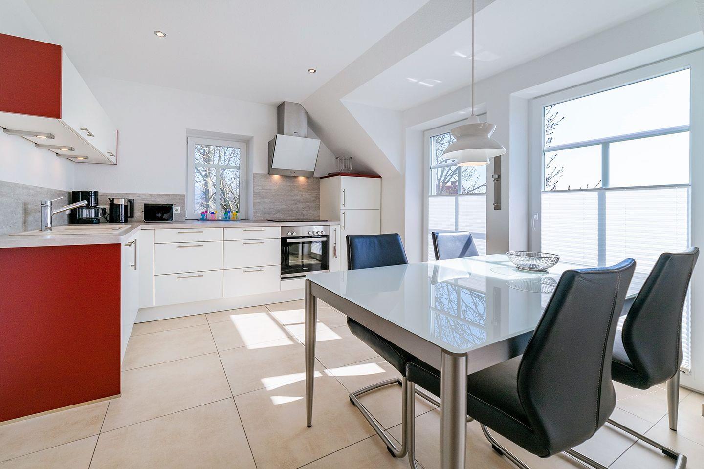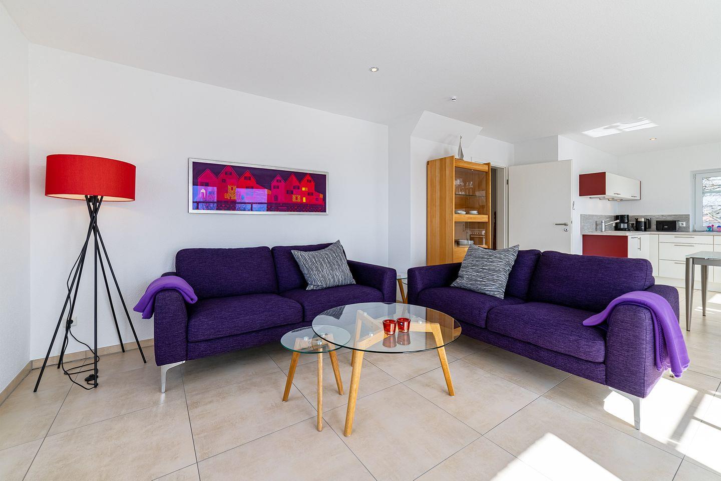 Die moderne Einrichtung und die großzügige Verglasung sorgen für ein helles und freundliches Ambiente.