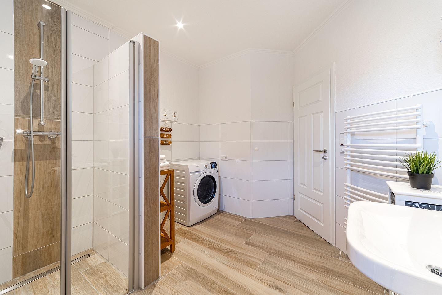 Badezimmer mit Dusche, Waschmaschine/Trockner (Kombigerät) im EG