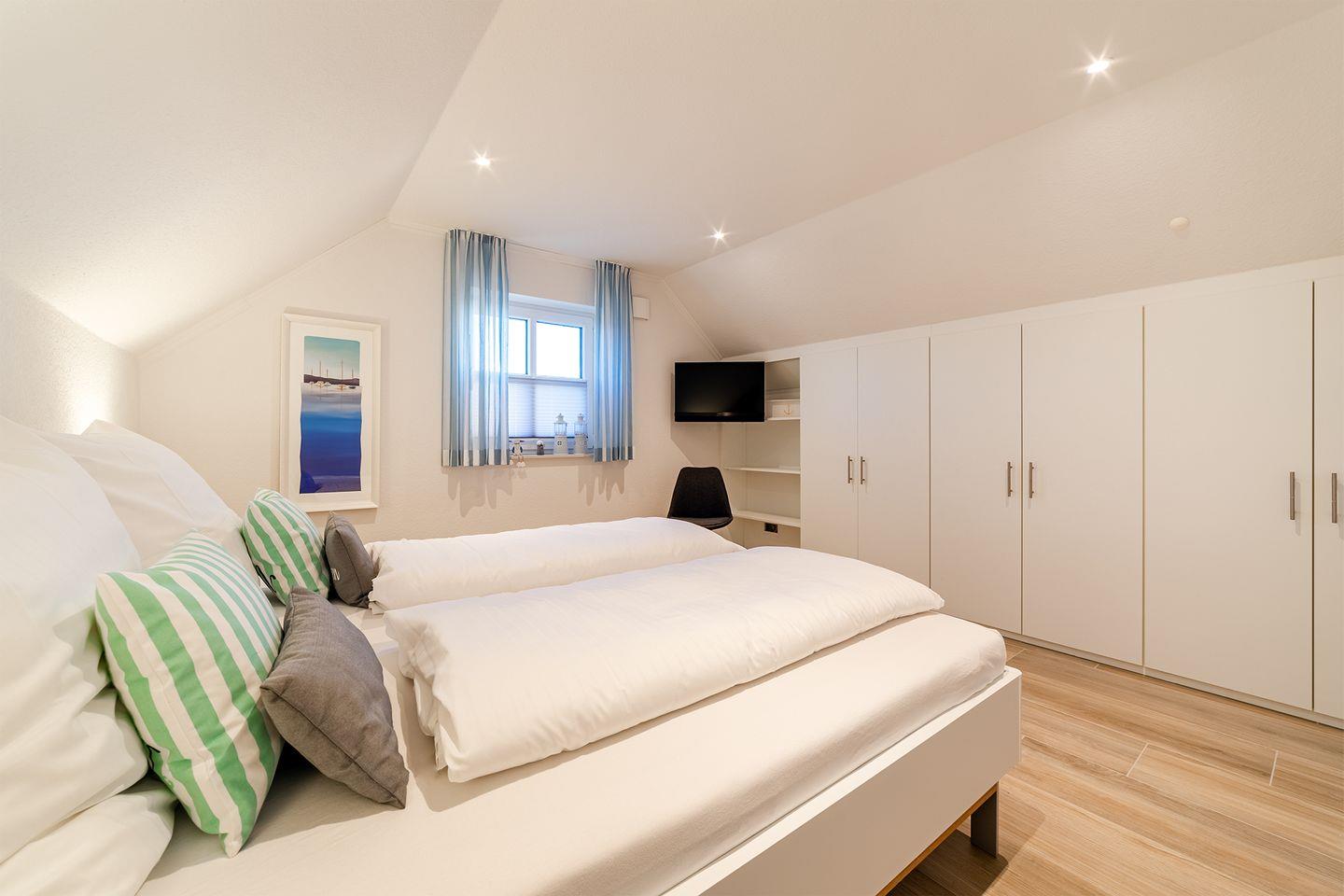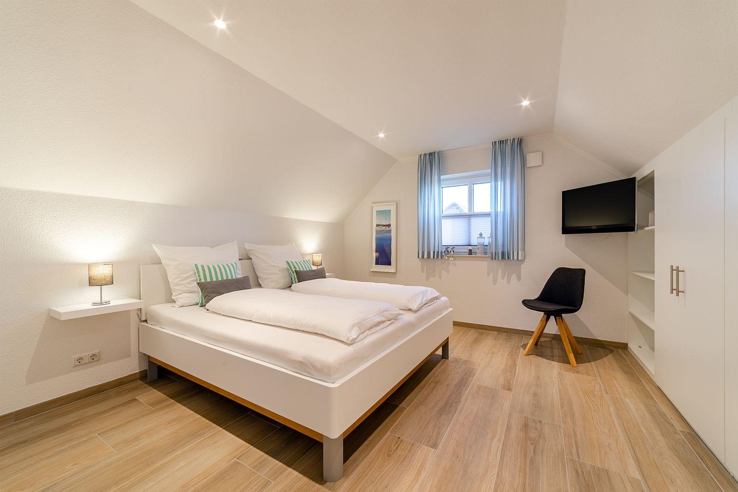 Schlafzimmer mit Doppelbett (180x200 cm) und TV im OG