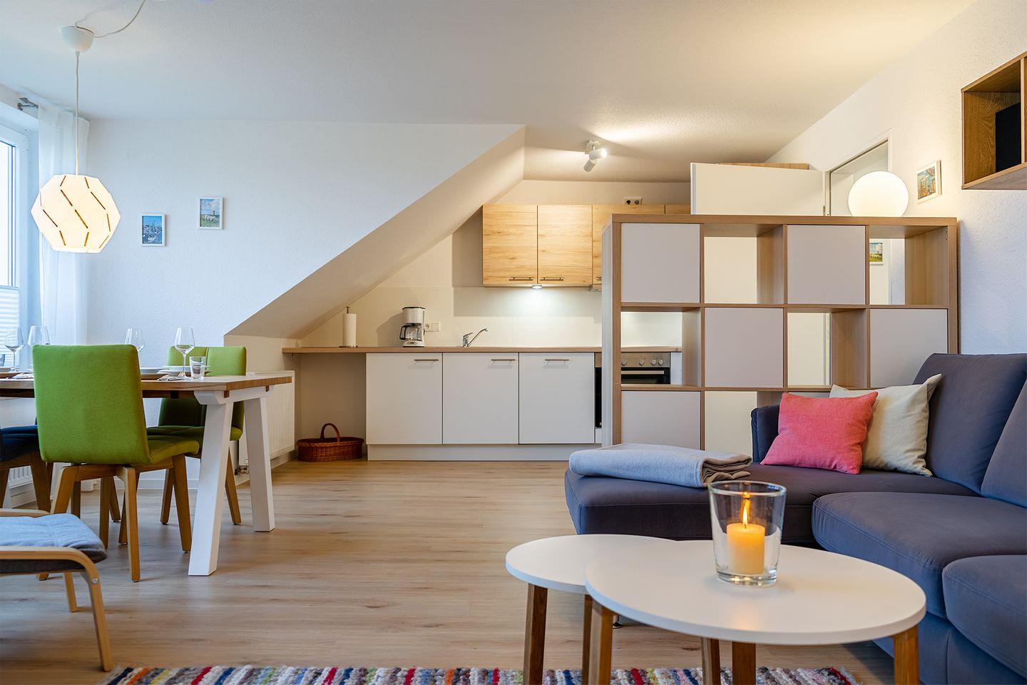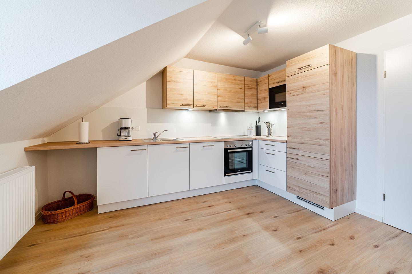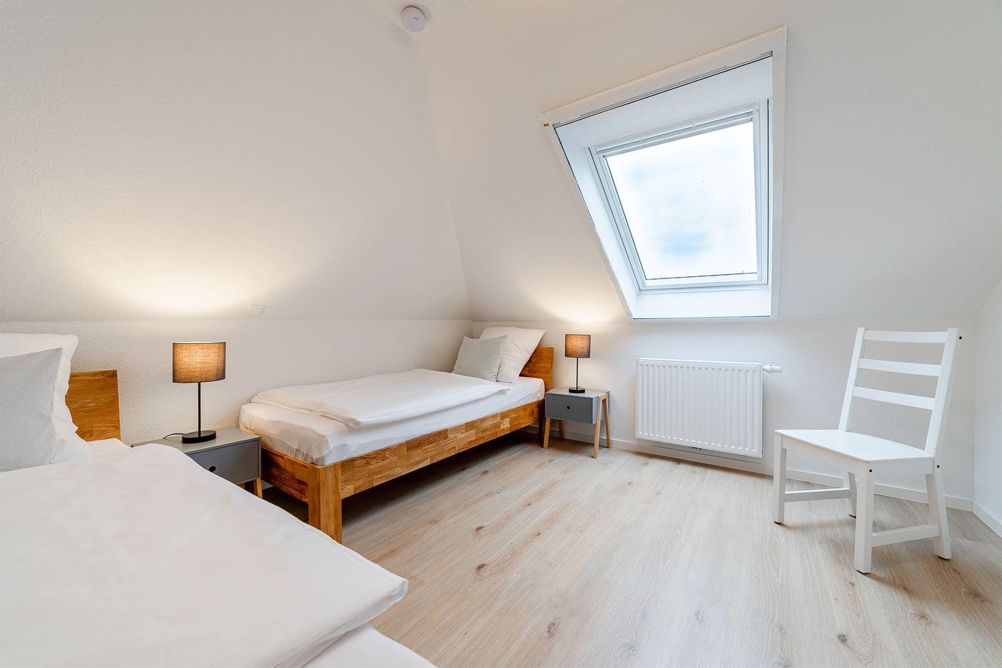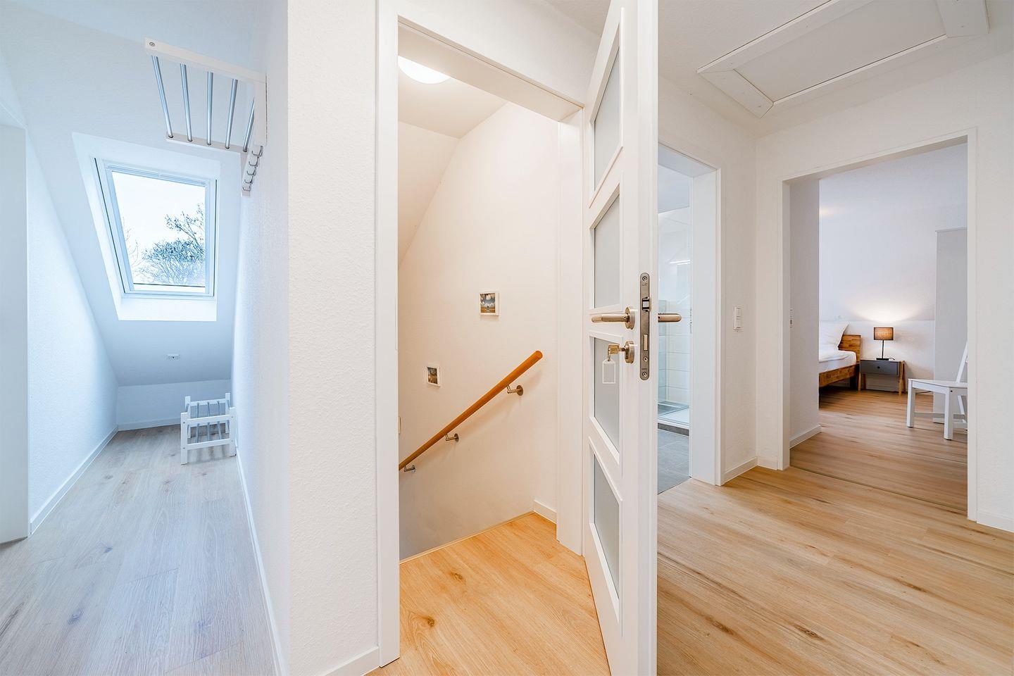Die Ferienwohnung „Upkaamer“ im Obergeschoss, die 2019/2020 von Grund auf renoviert wurde, bietet alles, was Sie für einen entspannten Urlaub zu viert brauchen. Mit ca. 70 qm (abzüglich der Dachschrägen) bietet sie ausreichend Platz für Ihre Erholung.