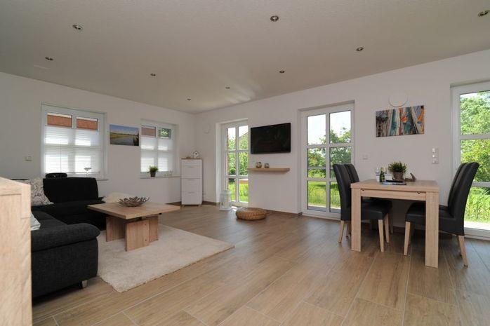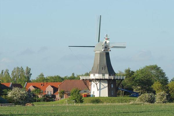 Moderne Ferienwohnung "Mühlenblick 02" in Greetsiel mit direktem Blick auf die Zwillingsmühlen und komfortabler Ausstattung.