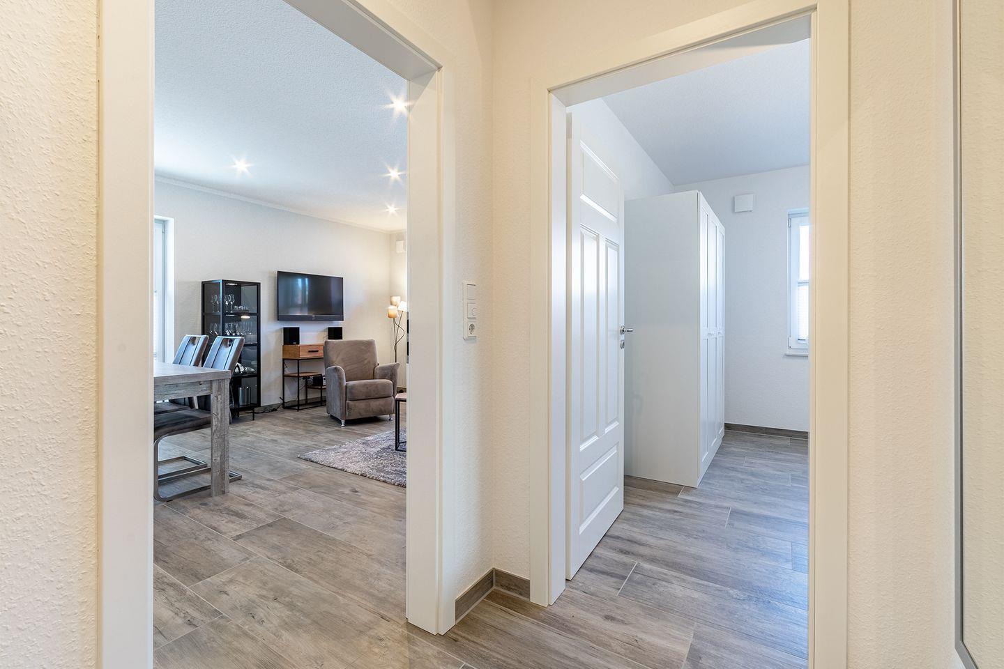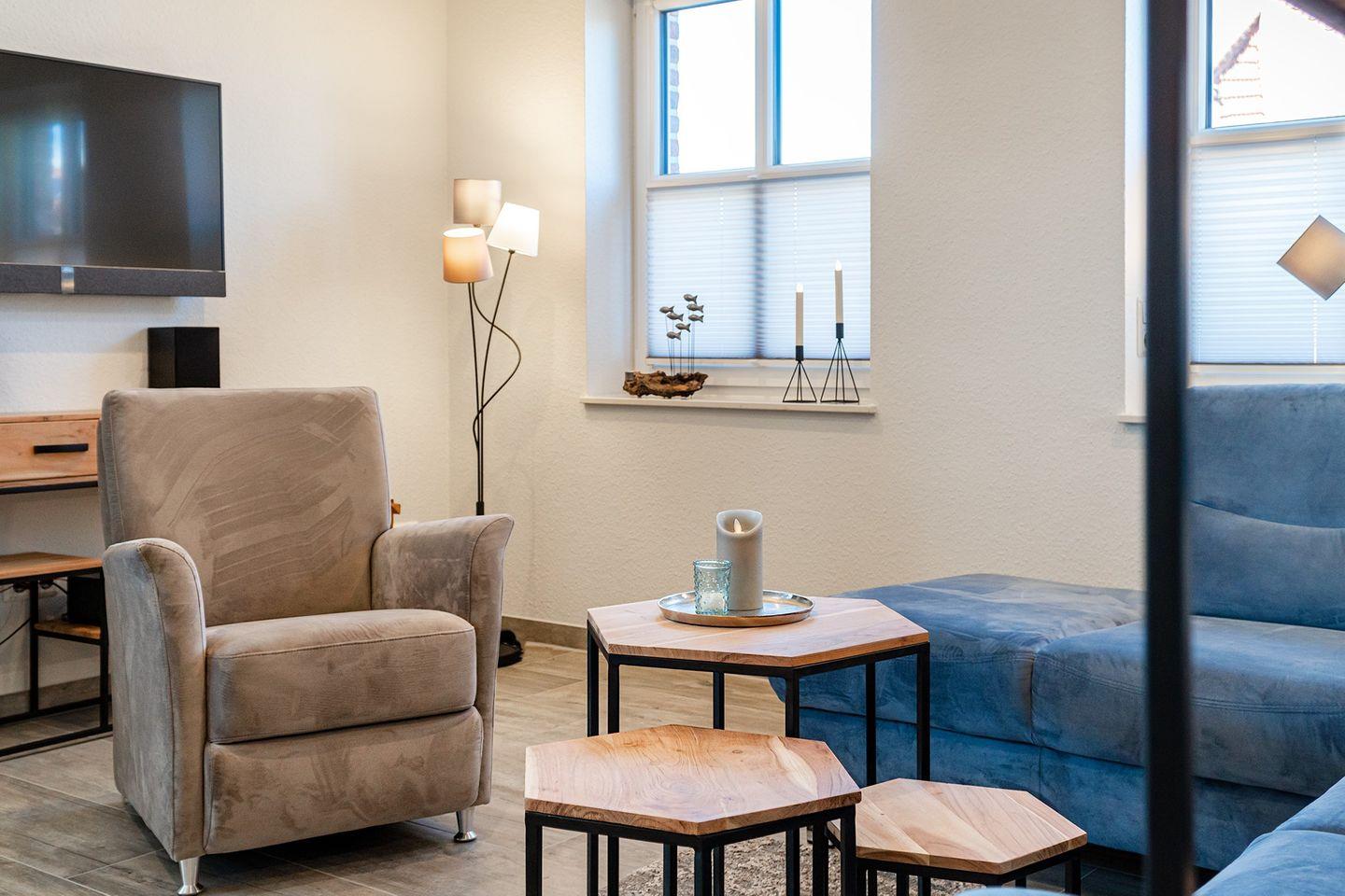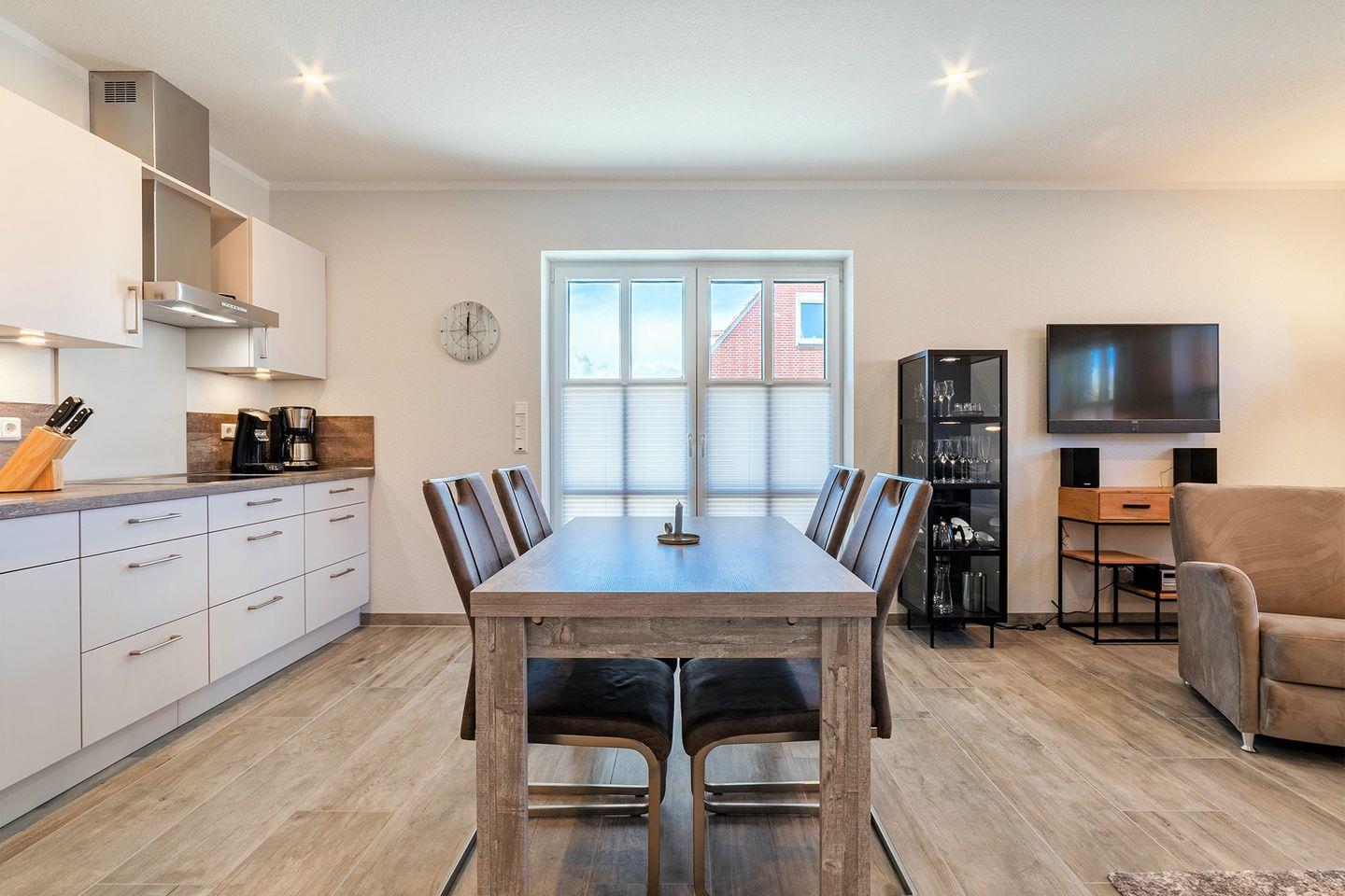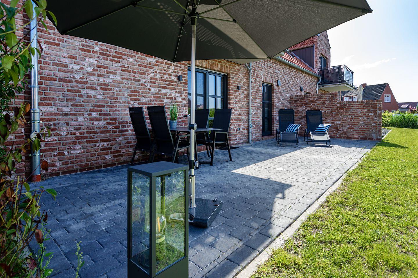 Modernes Ferienapartment in zentraler Lage von Greetsiel mit hochwertiger Ausstattung und Terrasse.