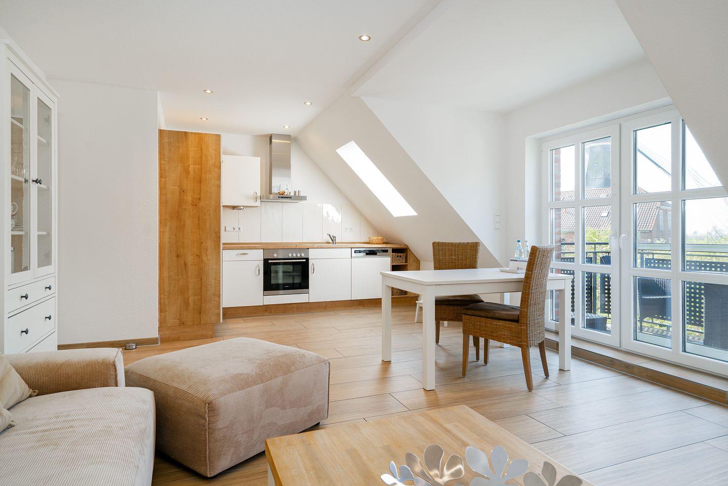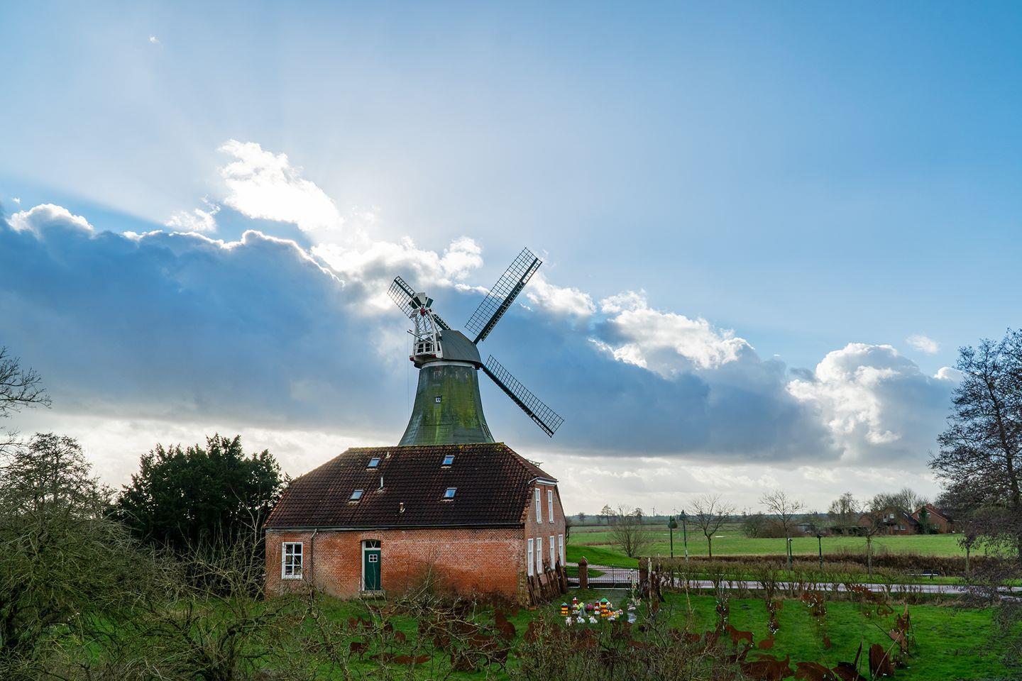 Moderne Ferienwohnung in Greetsiel mit traumhaftem Blick auf die Zwillingsmühlen und komfortabler Ausstattung.