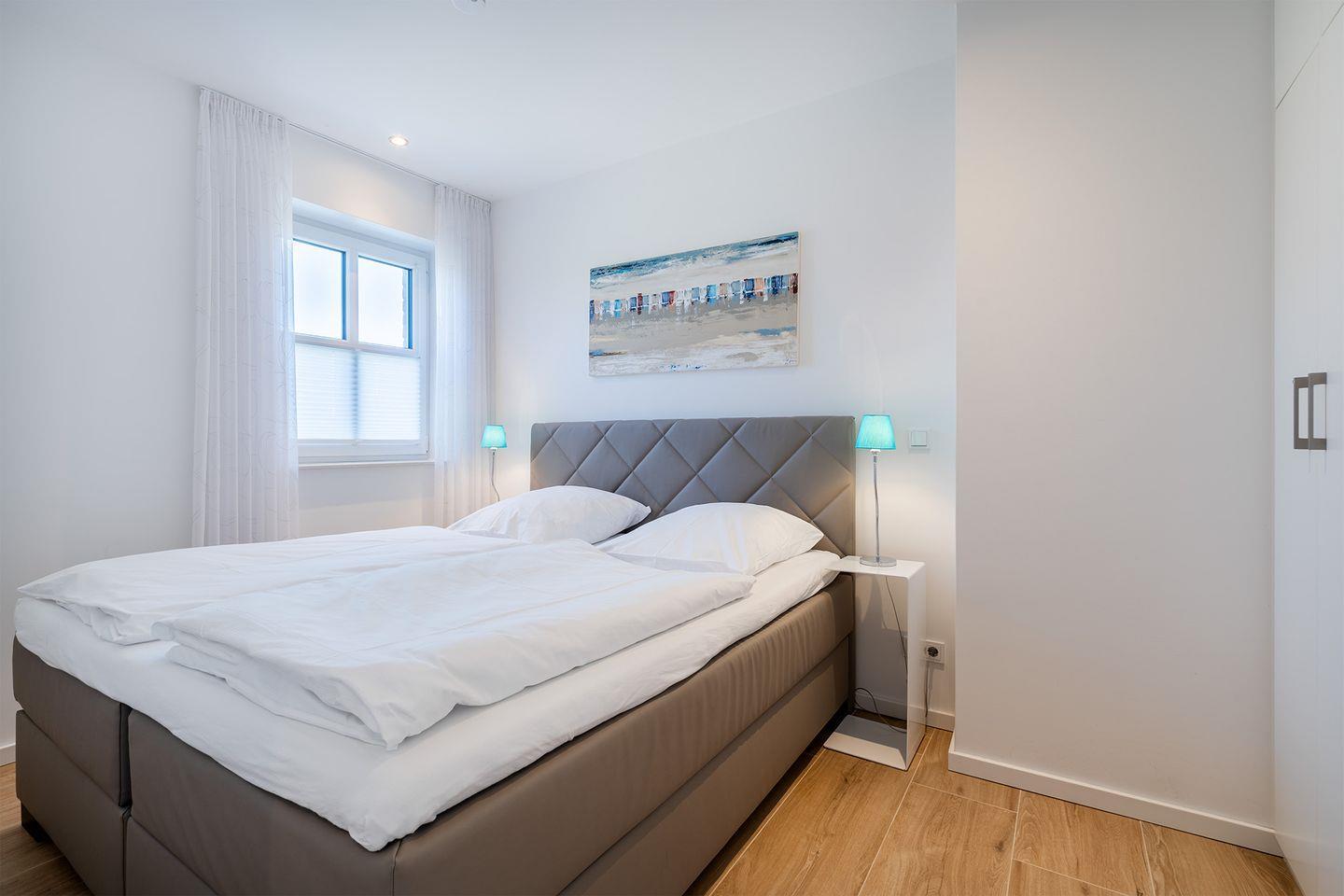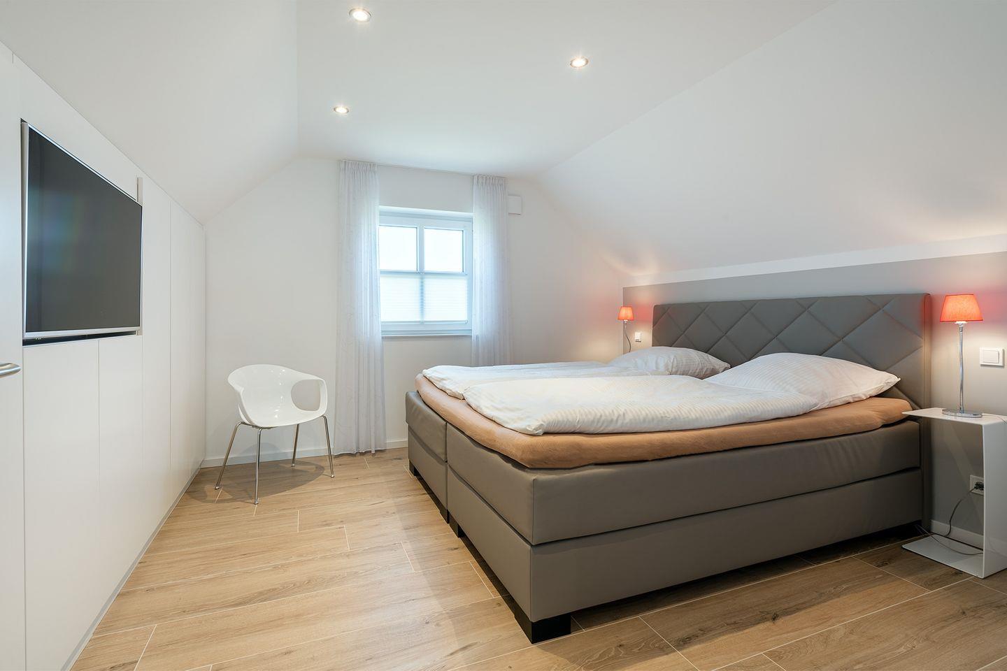 Die 'Meerliebe' ist ideal für 6 Personen. Für Kinder sind spezielle Annehmlichkeiten wie ein Kinderstuhl, Reisebett und Geschirr vorhanden. Die Schlafzimmer bieten Boxspringbetten, während die Bäder mit luxuriösen Details wie z. B. einer Infrarot-Tiefenwärmekabine ausgestattet sind. Der großzügige Garten mit Terrasse, Grill und Strandkorb lädt zum Entspannen ein. Weitere Annehmlichkeiten sind Fußbodenheizung, elektrische Rollläden und kostenfreie Fahrräder