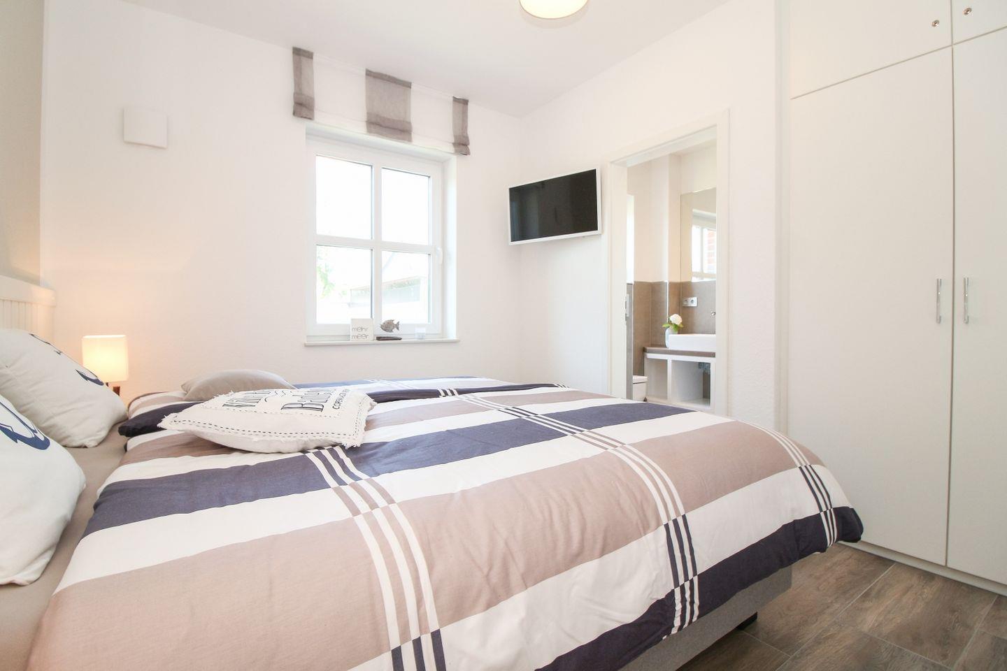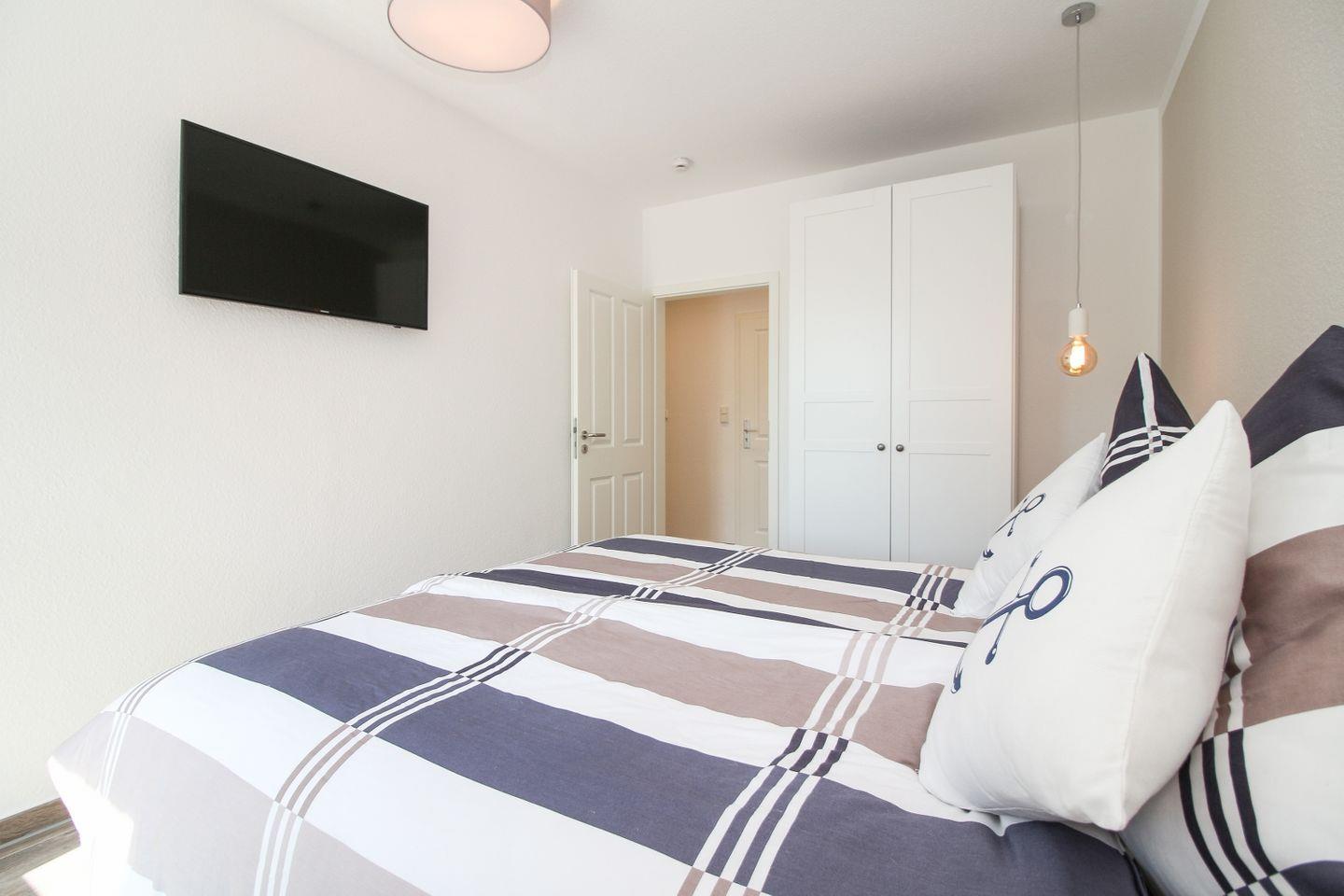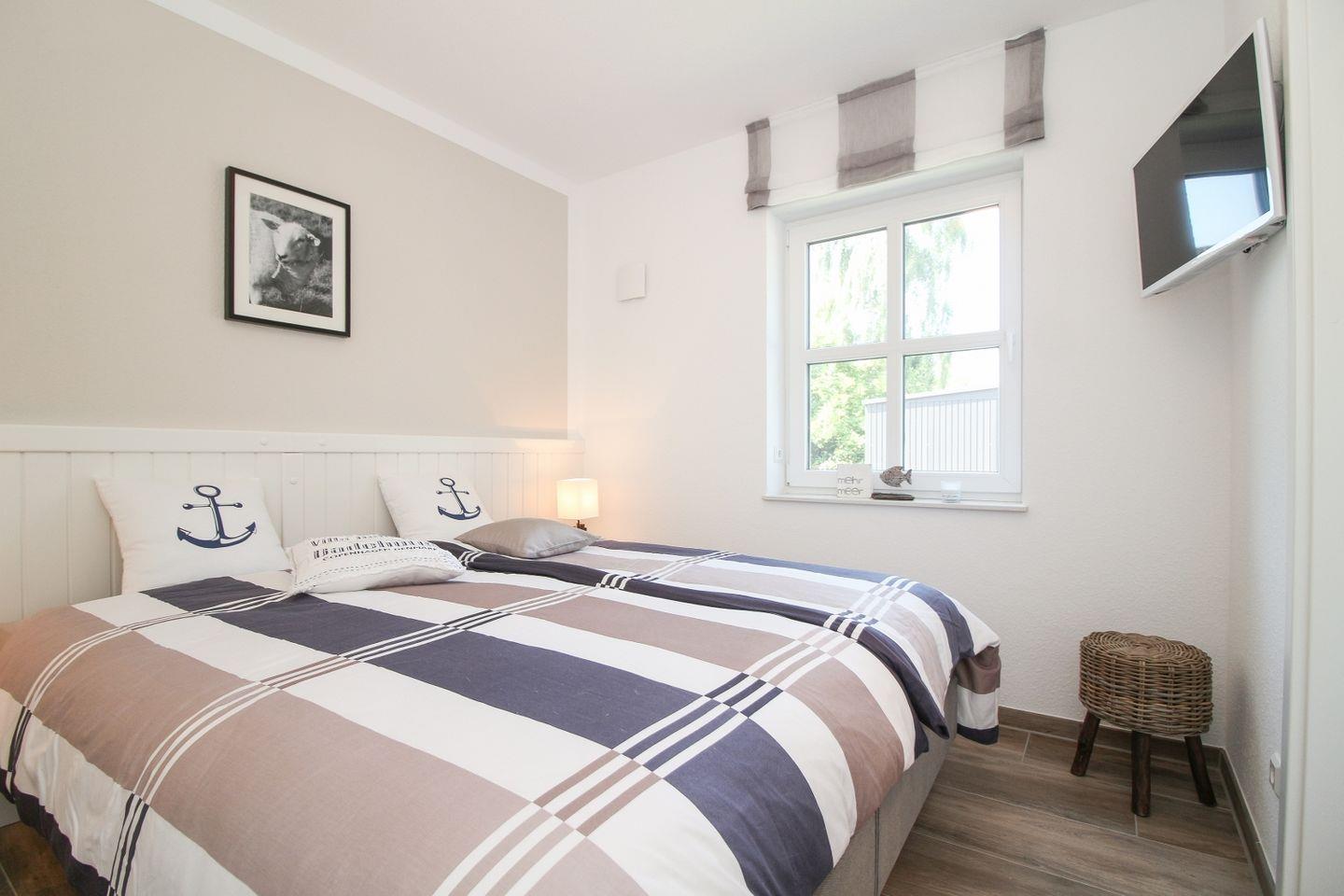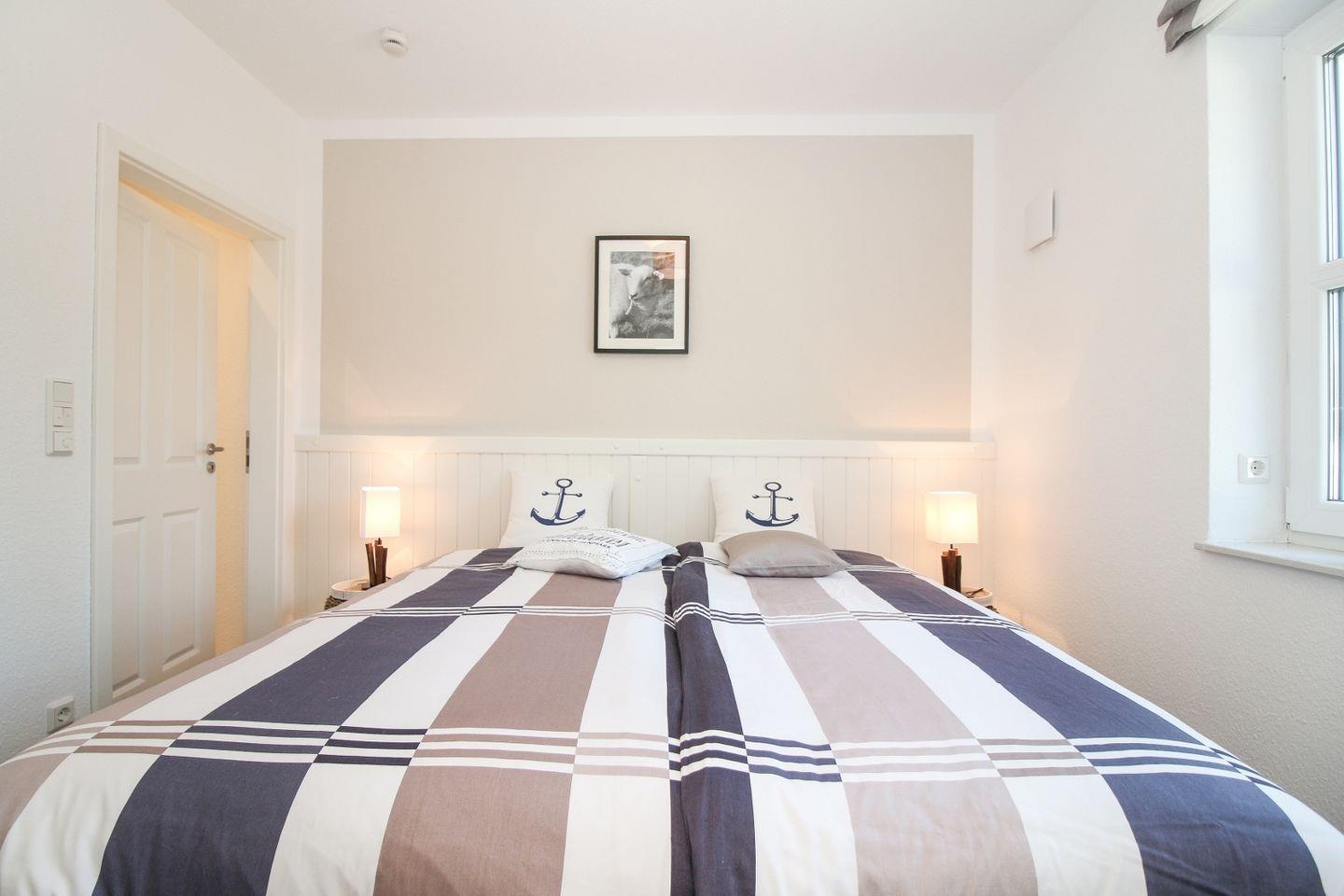 Die Wohnung verfügt über zwei separate Schlafzimmer, beide ausgestattet mit bequemen Boxspringbetten für einen erholsamen Schlaf.