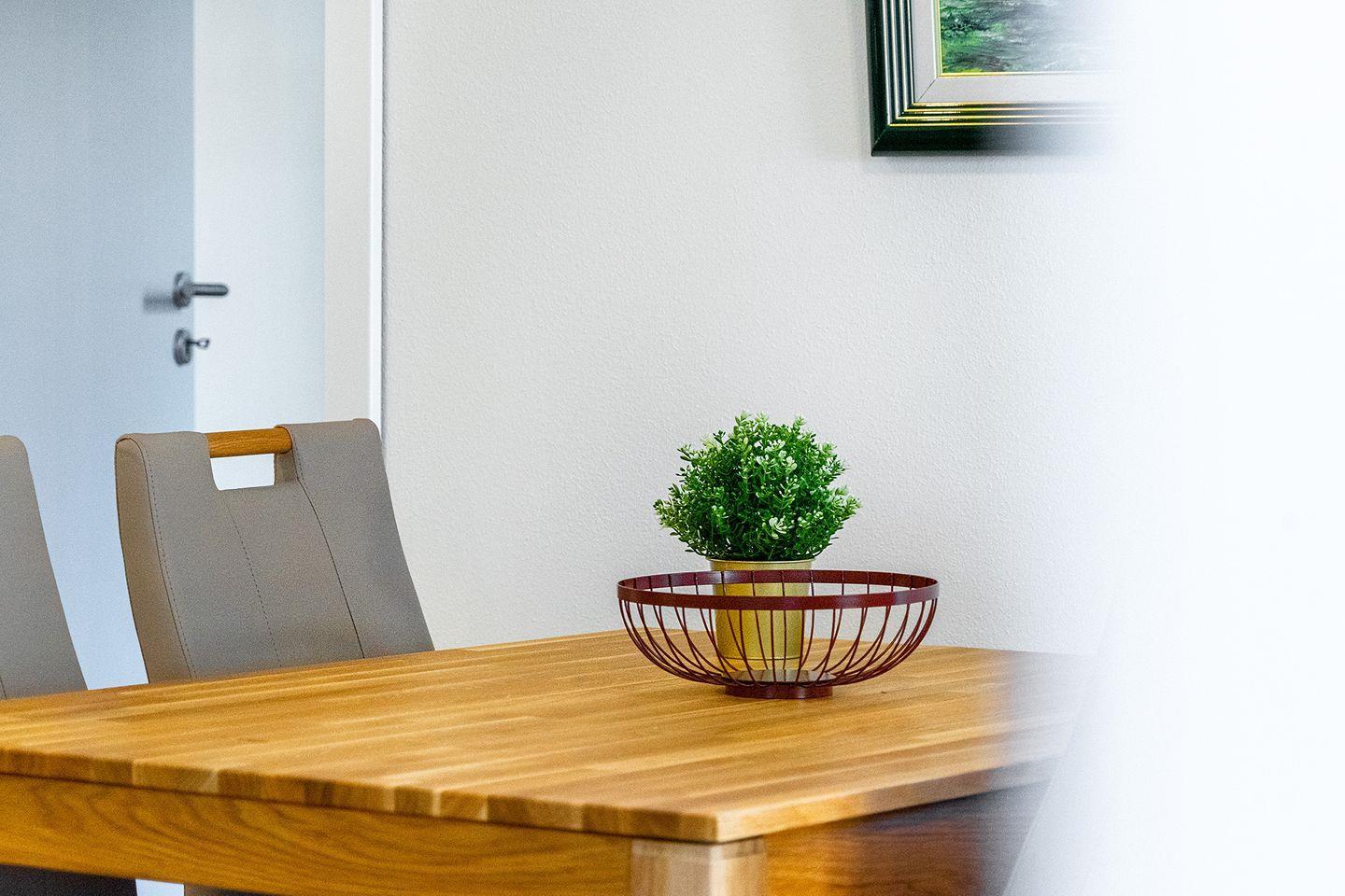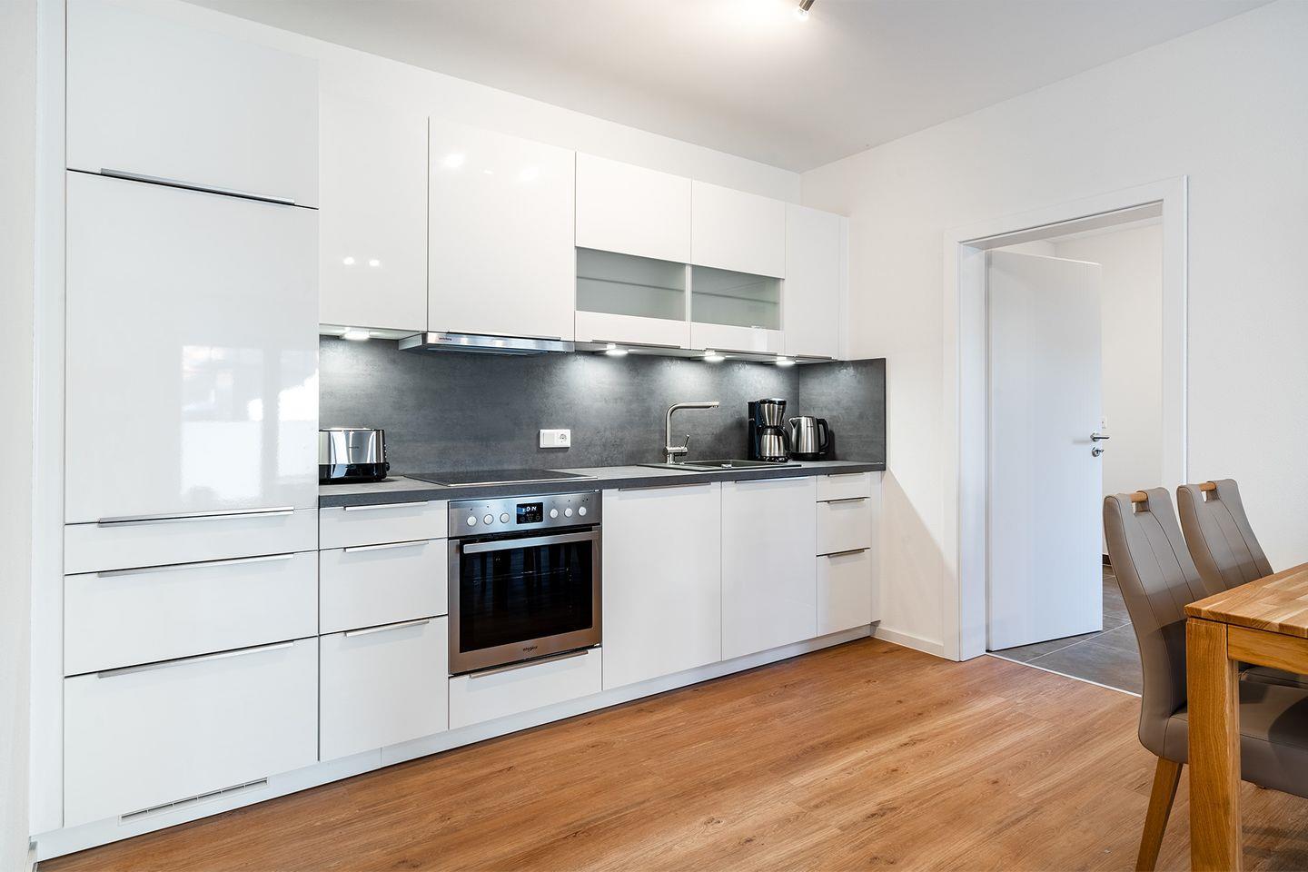 Der große, offene Wohn-Essbereich mit einer modernen Küche bietet alles, was Sie für einen gemütlichen Aufenthalt benötigen. Hier können Sie gemeinsam mit Ihrer Familie oder Freunden kochen und entspannen.