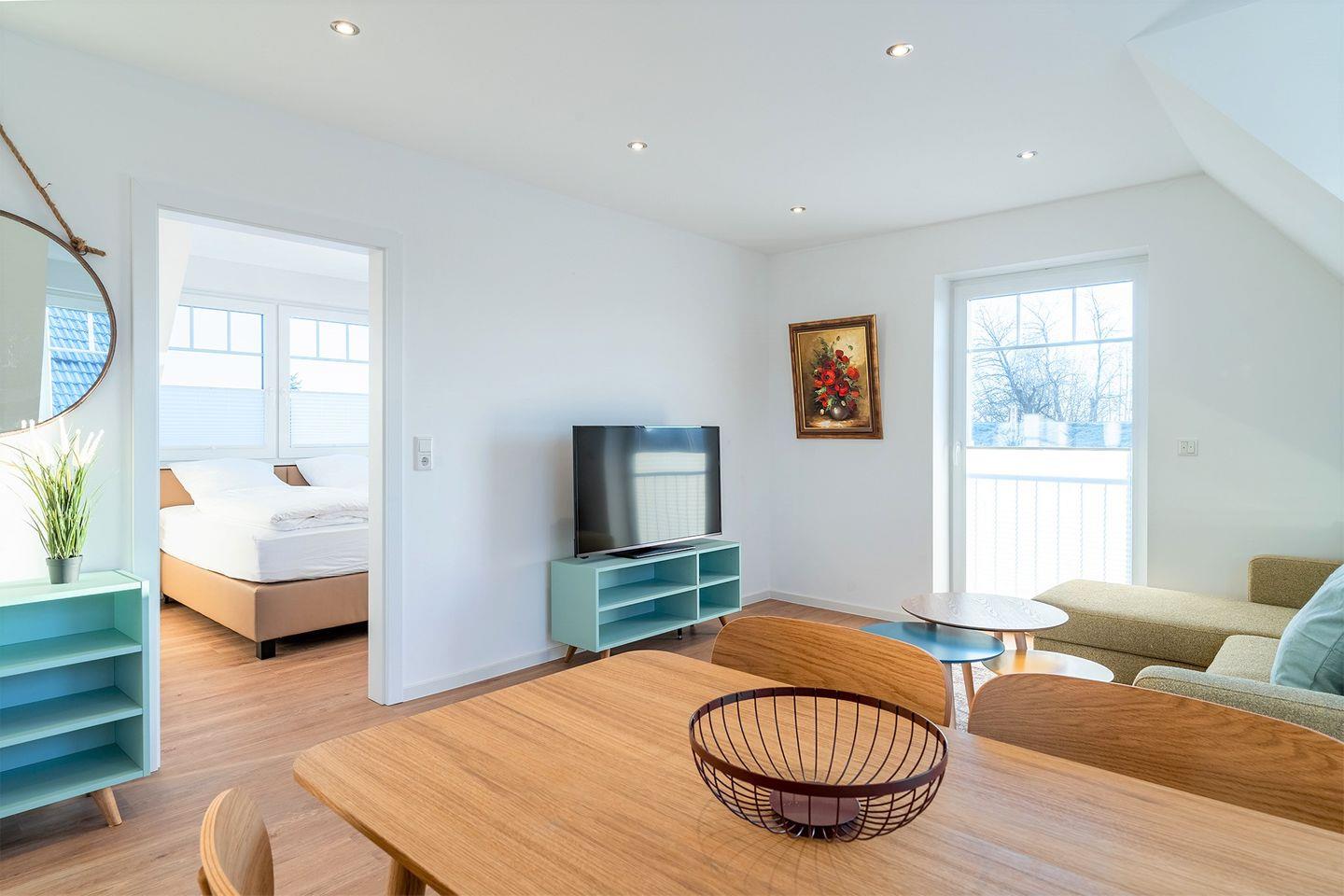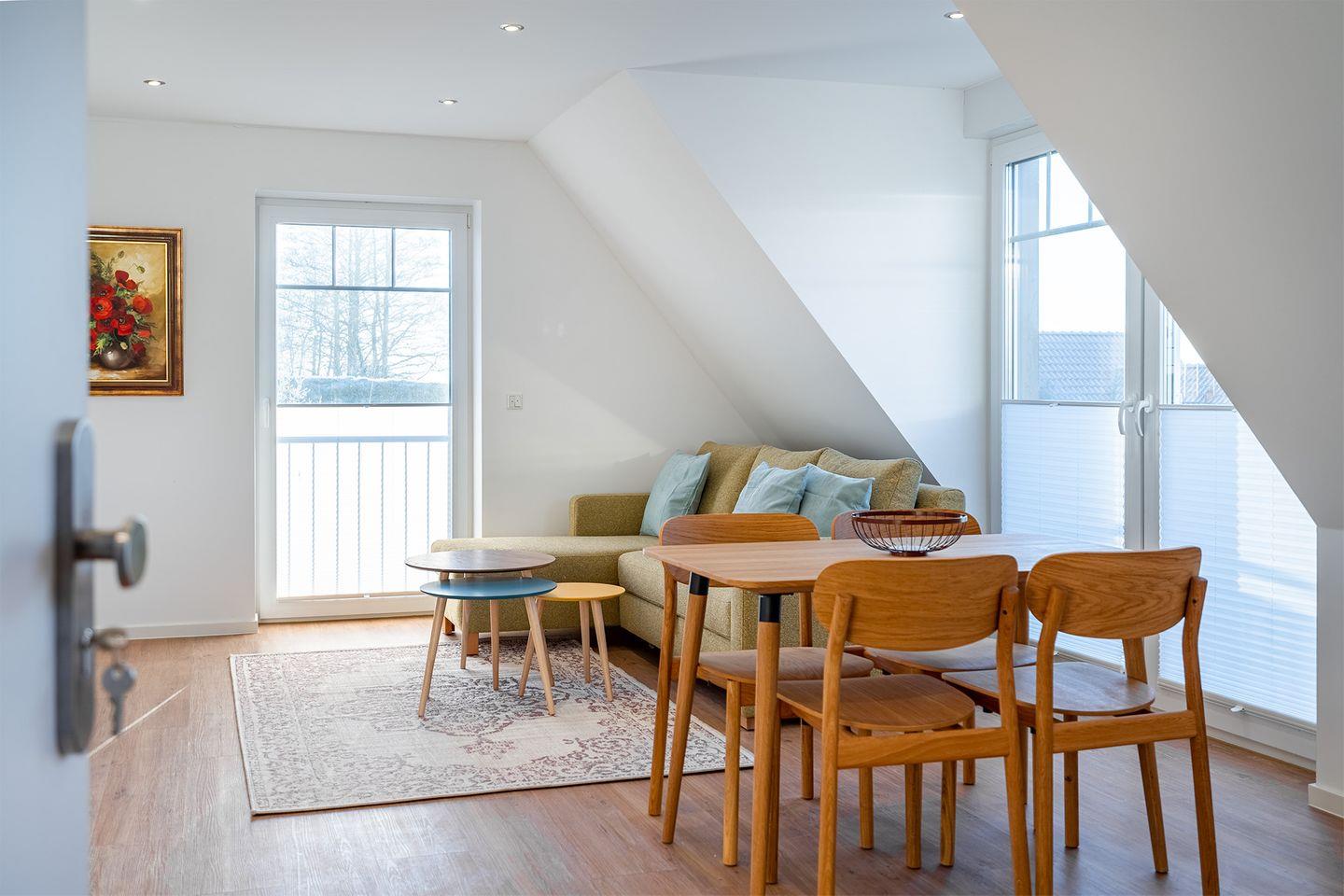 Moderne Obergeschosswohnung nahe Hafen mit Balkon, Parkplatz und E-Bike-Ladestation in Greetsiel.