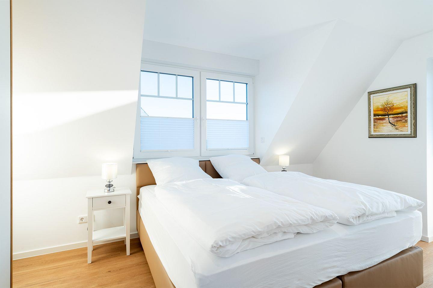 Moderne Obergeschosswohnung in Hafennähe mit offenem Wohn-Essbereich und moderner Küche. Schlafzimmer mit Boxspringbett, Bäder mit bodengleicher Dusche. Lichtdurchflutete Räume dank bodentiefer Fenster. PKW-Stellplatz und großer Abstellraum für Fahrräder, inklusive E-Bike-Ladestation. Sommerbalkon mit Gartenmöbeln ideal zum Entspannen.