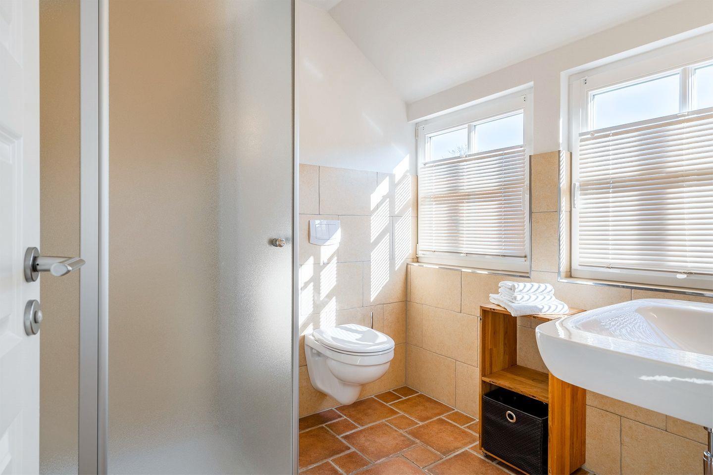 Das moderne Badezimmer verfügt über eine Dusche, ein WC sowie Fußbodenheizung, um Ihnen den gewünschten Wohlfühlfaktor zu bieten.