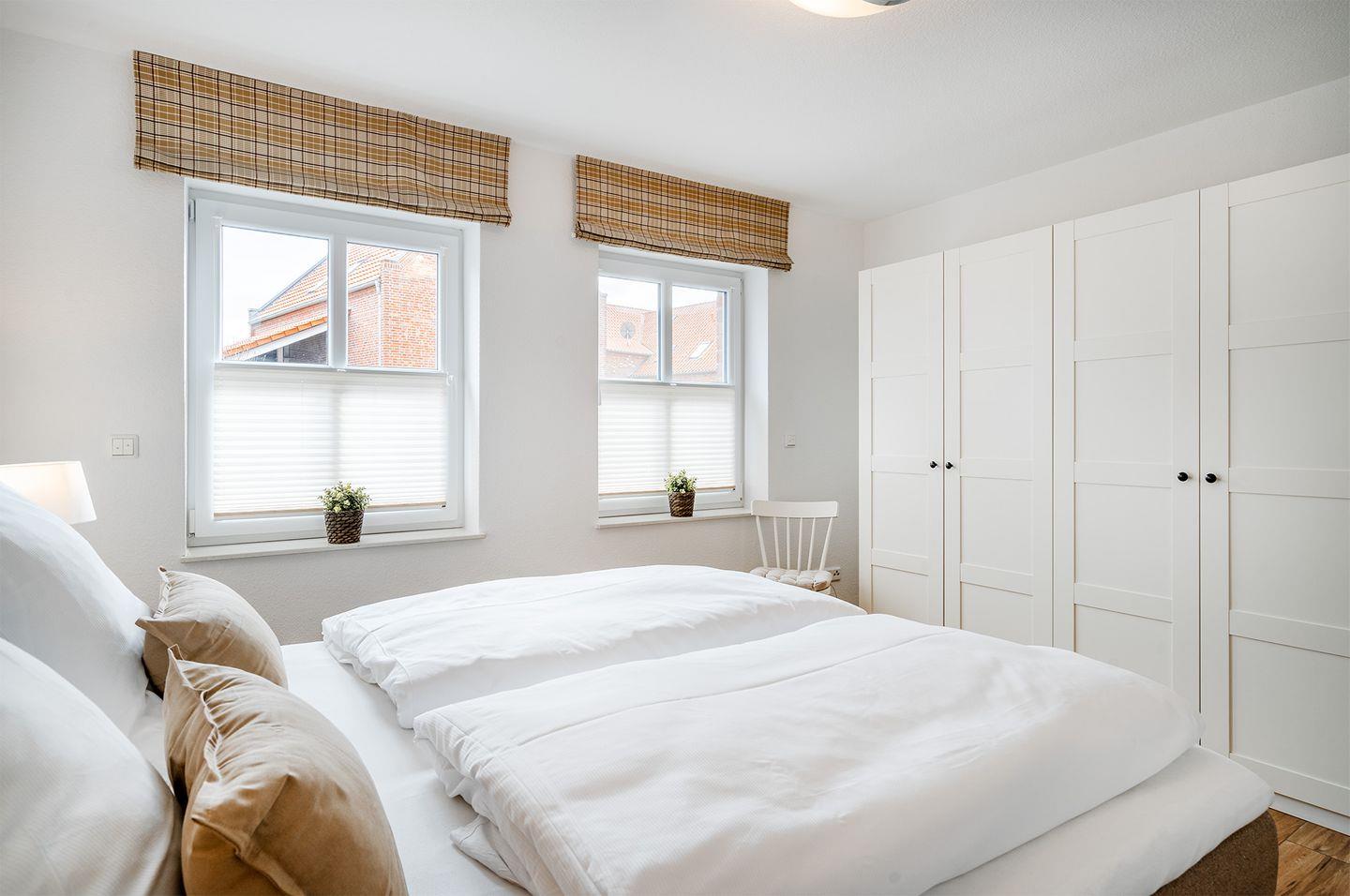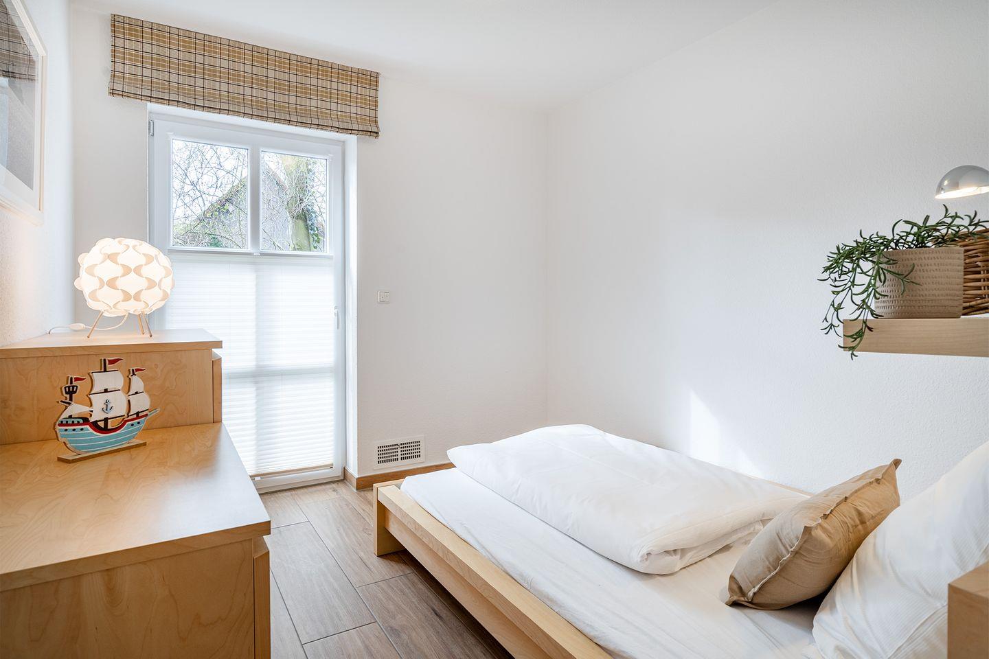 Das zweite Schlafzimmer verfügt über ein 1,40 m Bett und bietet ebenfalls genügend Stauraum.