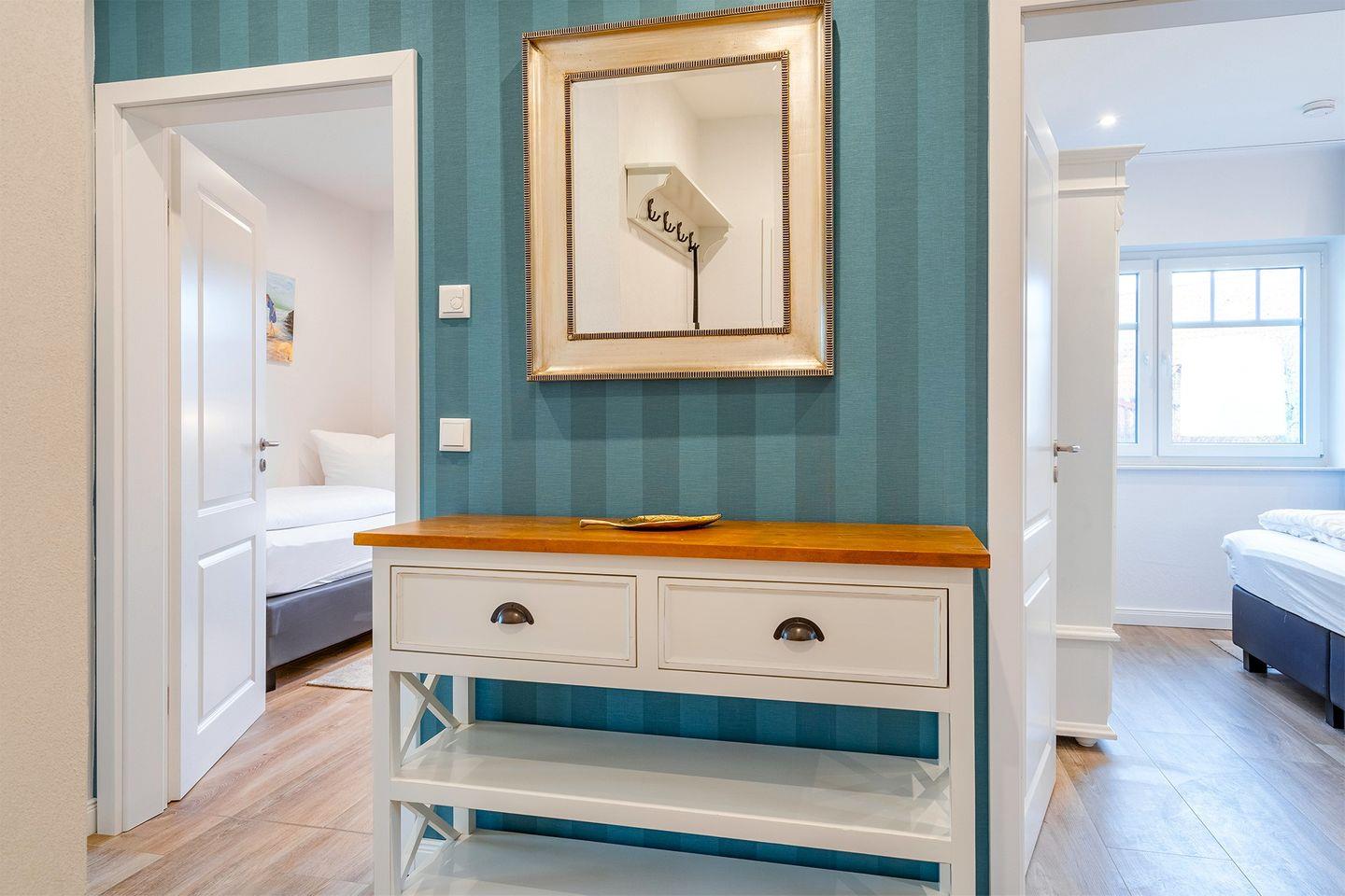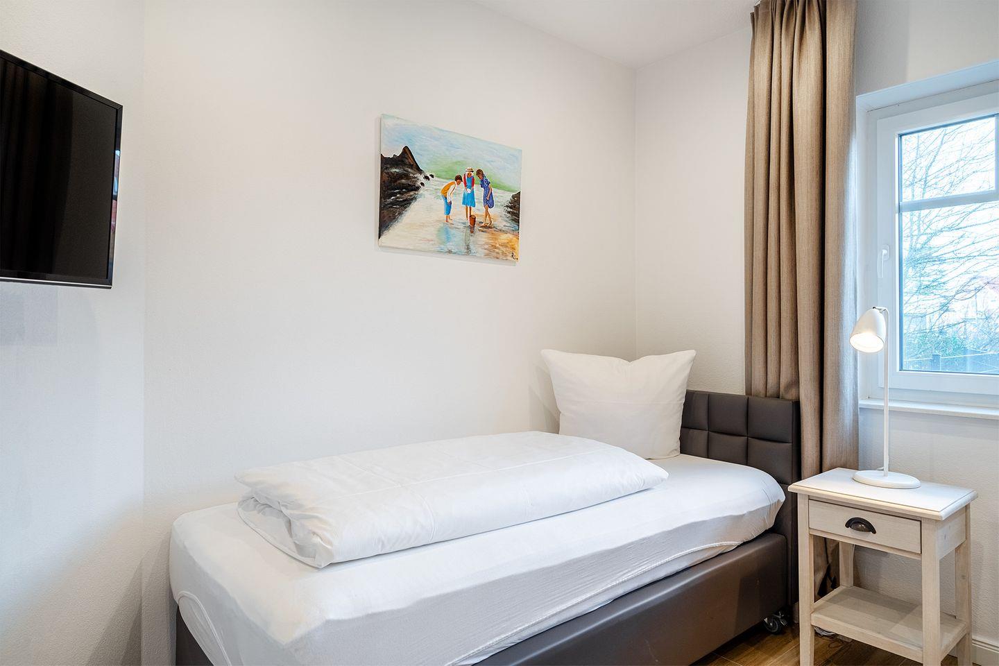 Das zweite Schlafzimmer verfügt über zwei einzelne Boxspringbetten (90x200 cm), die bei Bedarf zusammengeschoben werden können.