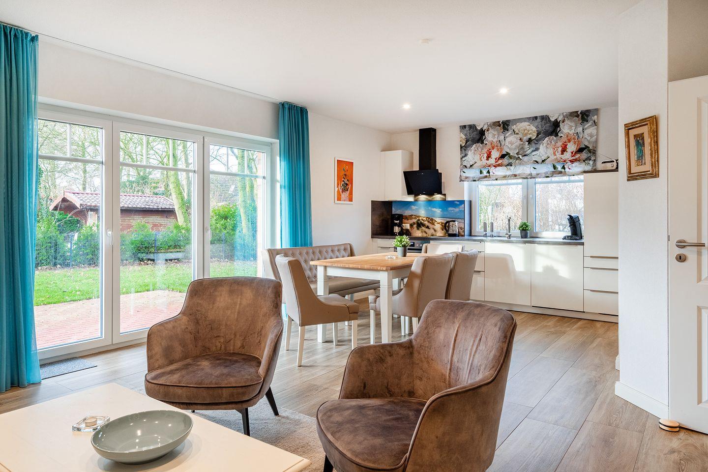 Der großzügige, lichtdurchflutete Wohn-Essbereich mit moderner Küche ist der perfekte Ort, um gemeinsam zu kochen, zu essen oder einfach zu entspannen. Die Küche bietet alles, was Sie für Ihre Mahlzeiten oder ein gemütliches Frühstück benötigen.