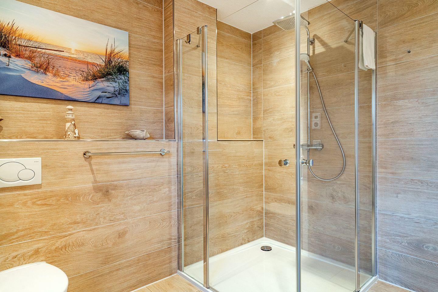 Das Ferienhaus ist mit breiten Türdurchgängen, elektrisch verstellbaren Lattenrosten im EG, einer großräumigen Dusche im EG sowie Rampenzugängen für die Eingänge behindertenfreundlich ausgestattet.