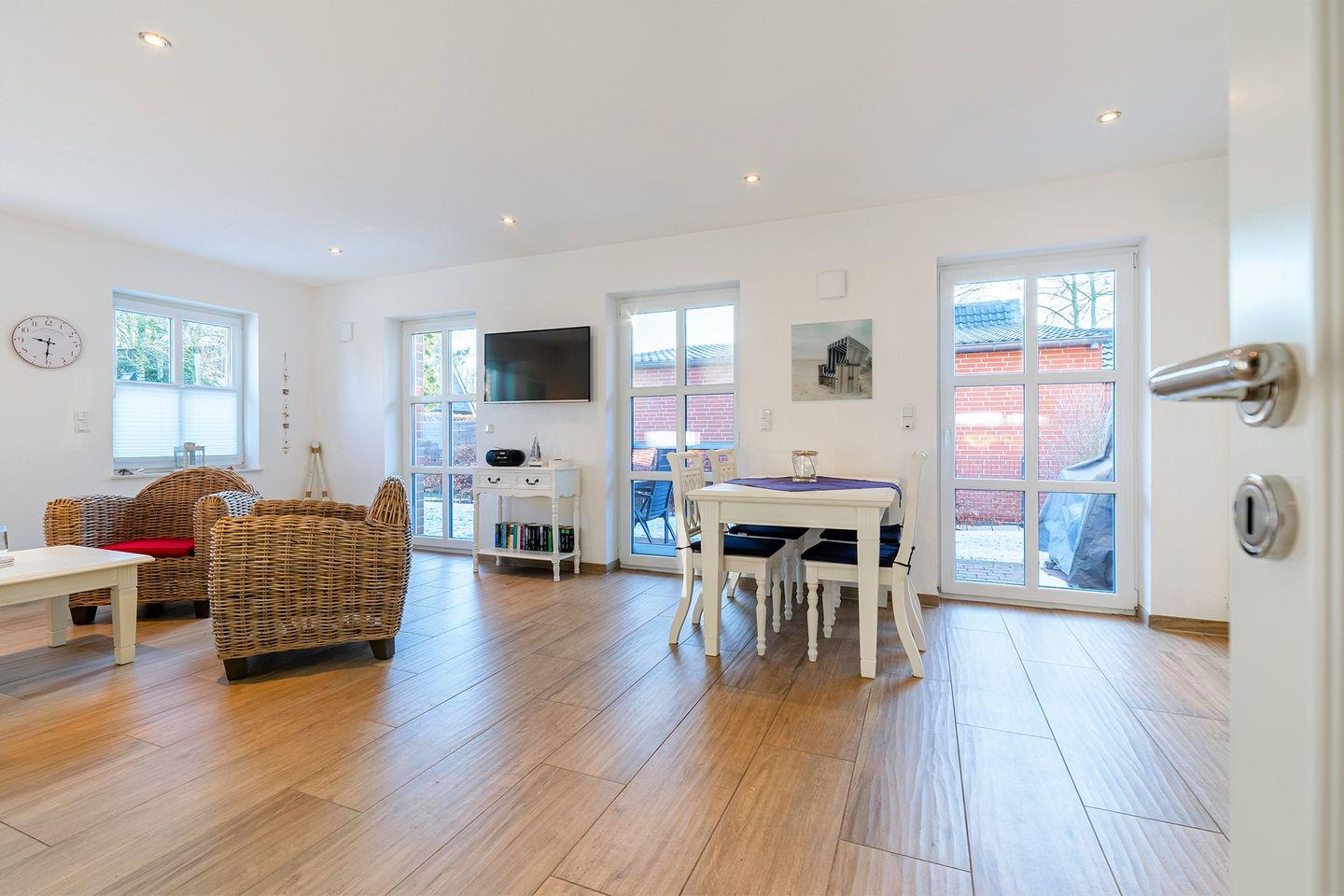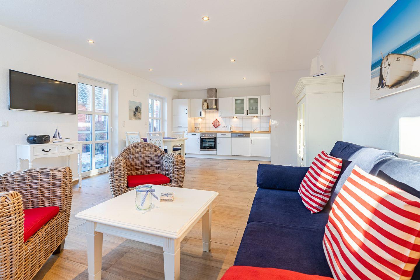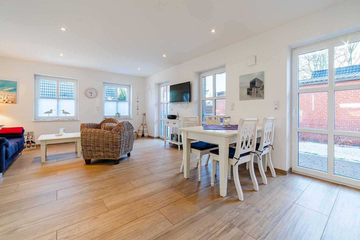 Die Ferienwohnung "Seemöwe" bietet maritimes Flair und Gemütlichkeit für Ihren Urlaub am Meer. Mit einem Schlafzimmer, Wohnzimmer mit Küche und Essbereich, sowie einem Badezimmer mit Dusche und WC ausgestattet. Genießen Sie die Terrasse mit Strandkorb, den eingezäunten Rasenbereich und die zentrale Lage zwischen Deich und Hafen. Haustiere sind willkommen. Parkplatz am Haus und Fahrradraum vorhanden. Herzlicher Service vor Ort für einen sorgenfreien Aufenthalt.