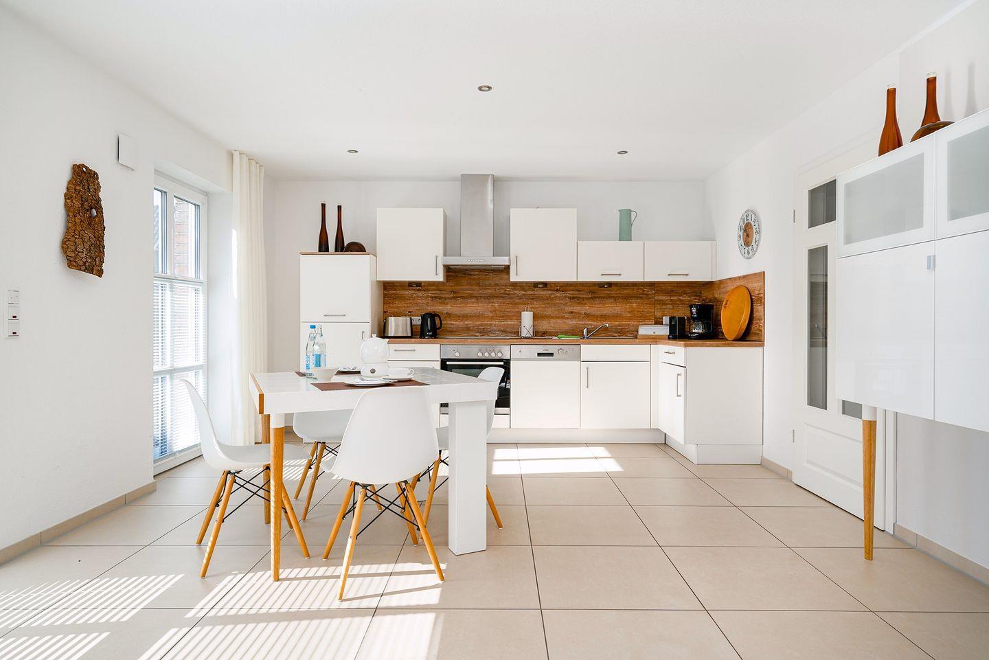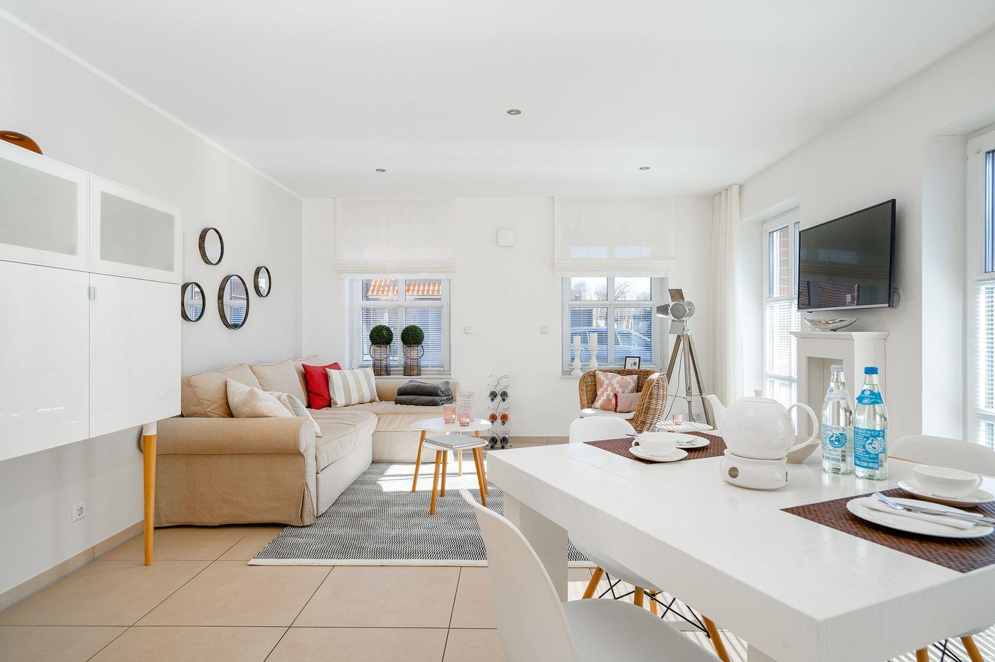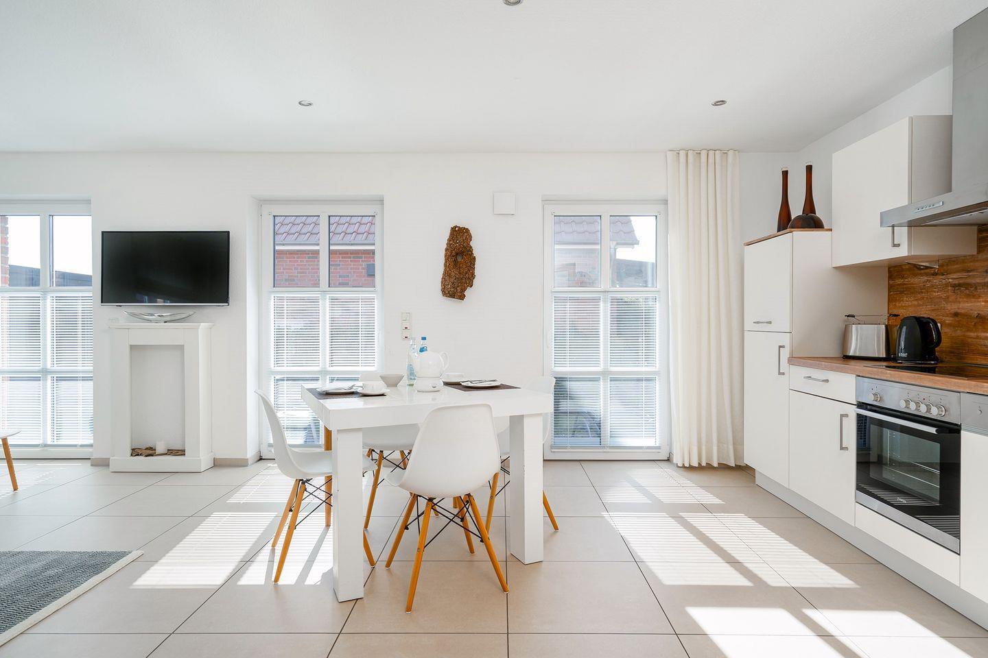 Wohnbereich: Der offene Wohnraum mit einem kombinierten Küchen- und Essbereich bietet Ihnen alles, was Sie für einen angenehmen Aufenthalt benötigen. Auf Anfrage können eine 3. + 4. Person auf dem Schlafsofa untergebracht werden.
