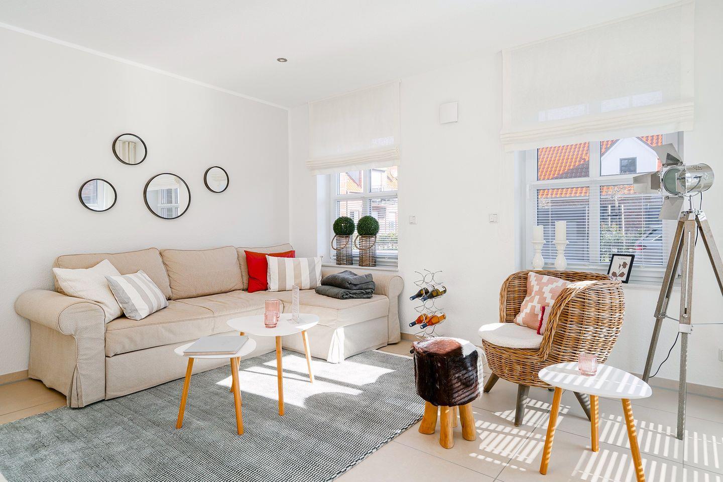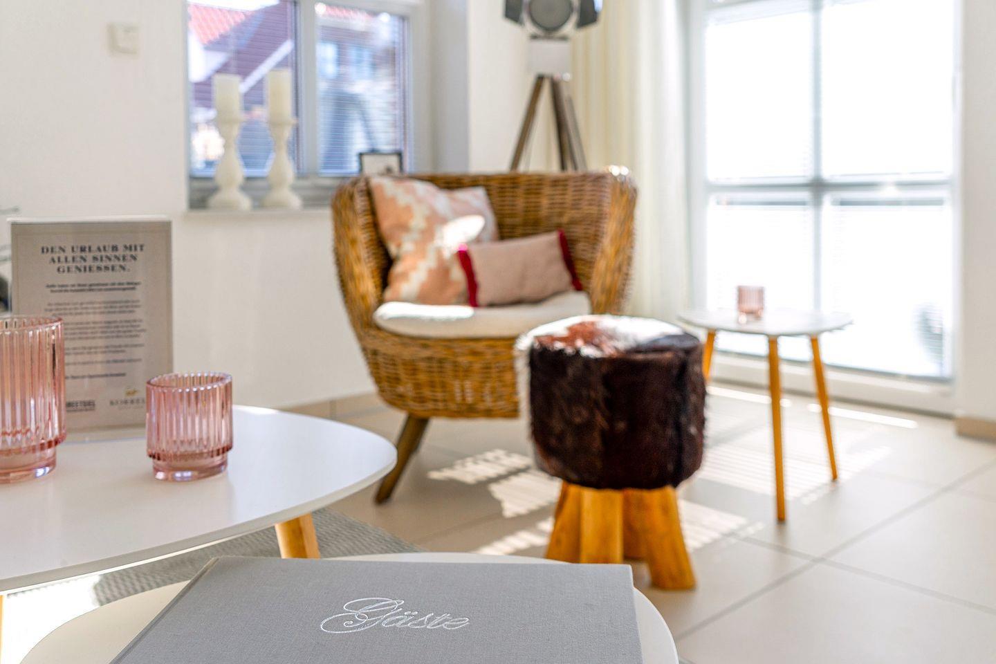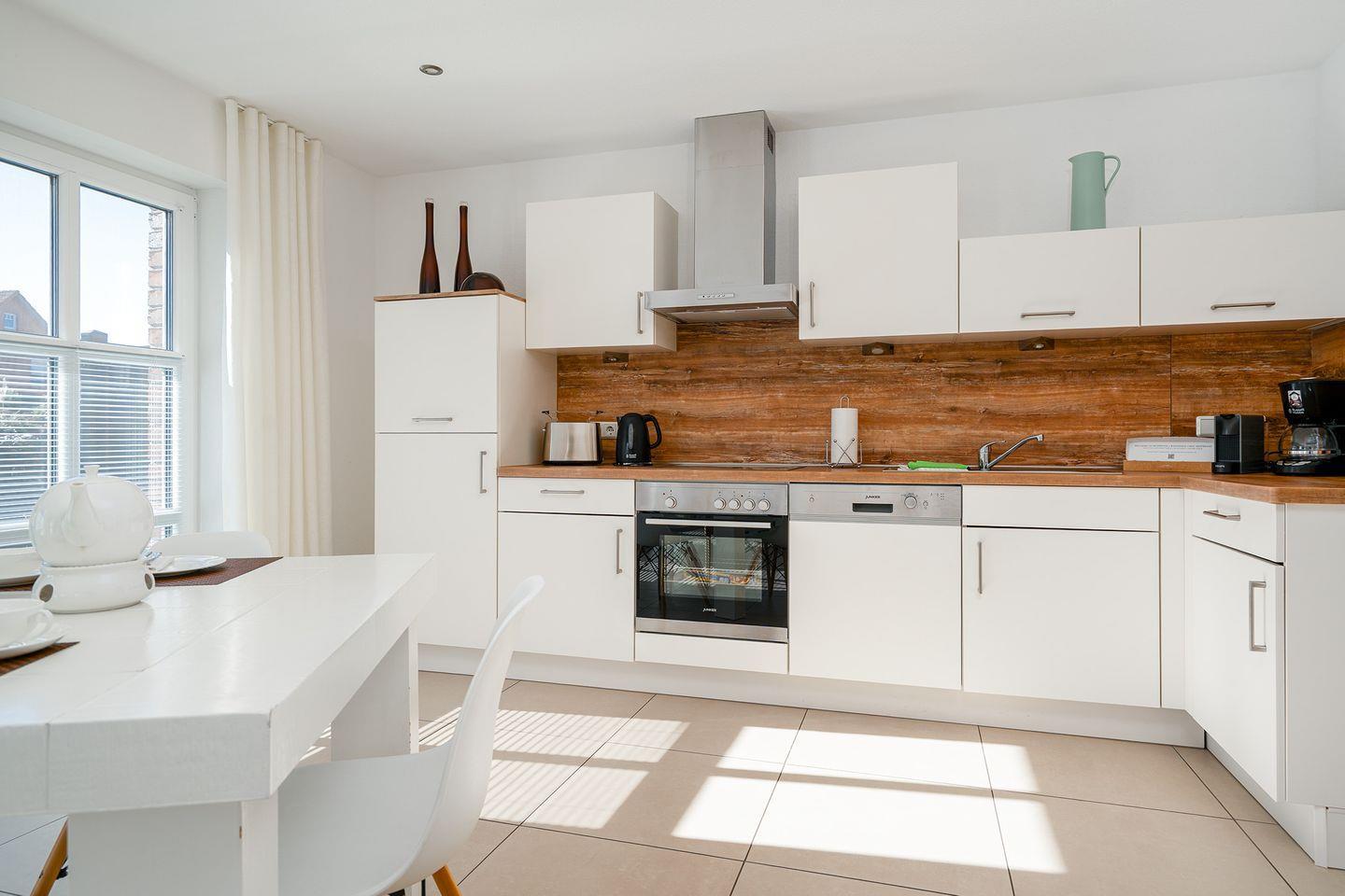 Wohnbereich: Der offene Wohnraum mit einem kombinierten Küchen- und Essbereich bietet Ihnen alles, was Sie für einen angenehmen Aufenthalt benötigen. Auf Anfrage können eine 3. + 4. Person auf dem Schlafsofa untergebracht werden.