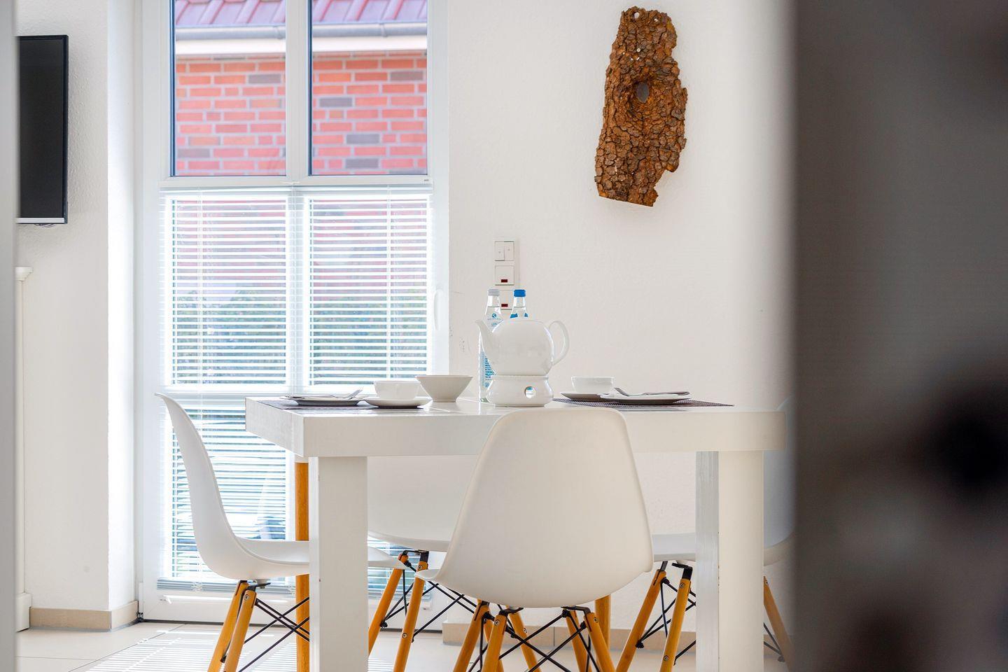 Der 'Schuppen deluxe 01' ist eine moderne und frisch eingerichtete Ferienwohnung für erholsame Urlaubstage. Mit einem Schlafzimmer, einem lichtdurchfluteten Wohnraum mit offener Küche und Essbereich sowie einem stilvollen Badezimmer bietet sie alles, was man für einen komfortablen Aufenthalt benötigt. Optional buchbar: Wäschepaket für zusätzlichen Komfort. Ruhig und dennoch zentral gelegen, ist der 'Schuppen deluxe' der ideale Ort zum Entspannen in Greetsiel.