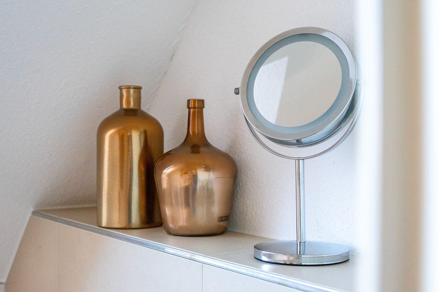 Badezimmer: Das Badezimmer verfügt über eine elegante bodengleiche Dusche, die mit einem "Raindancer"-Duschkopf ausgestattet ist, um Ihnen ein luxuriöses Duscherlebnis zu bieten.