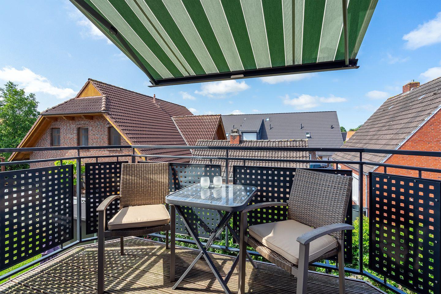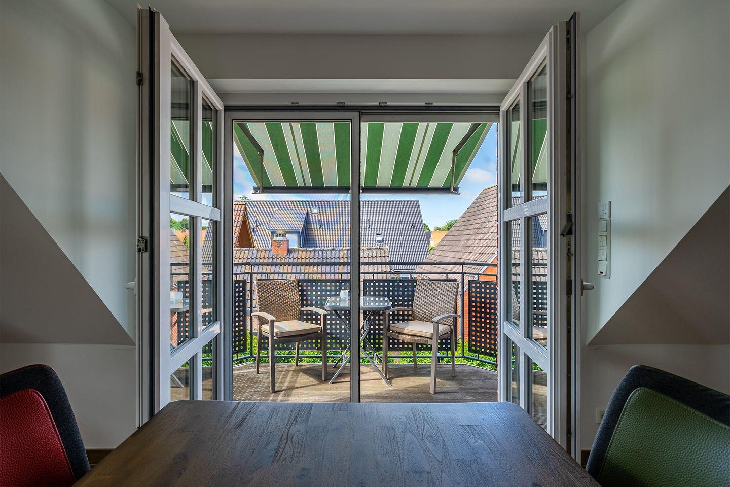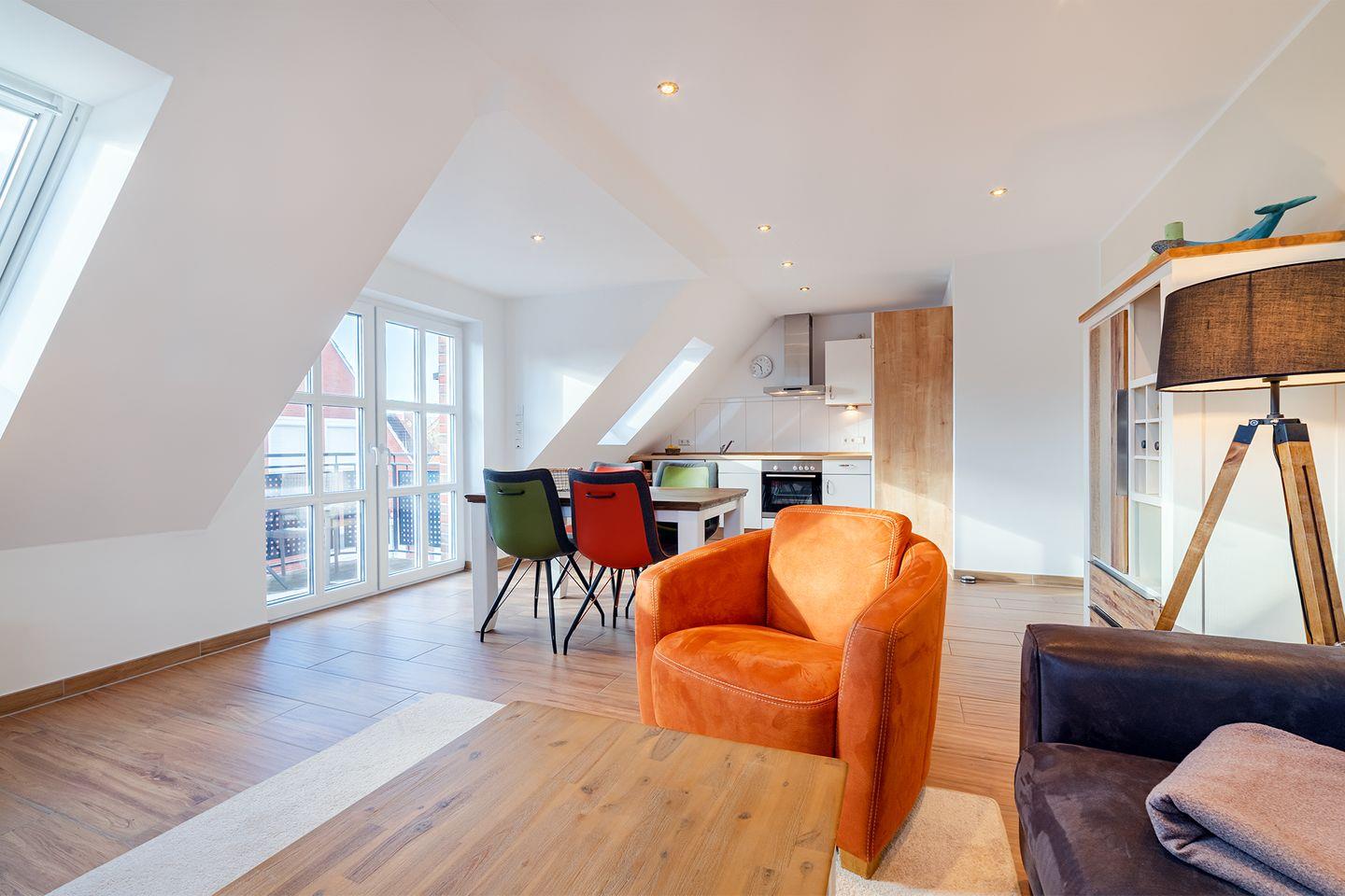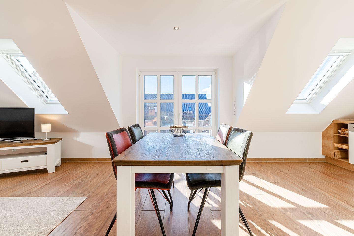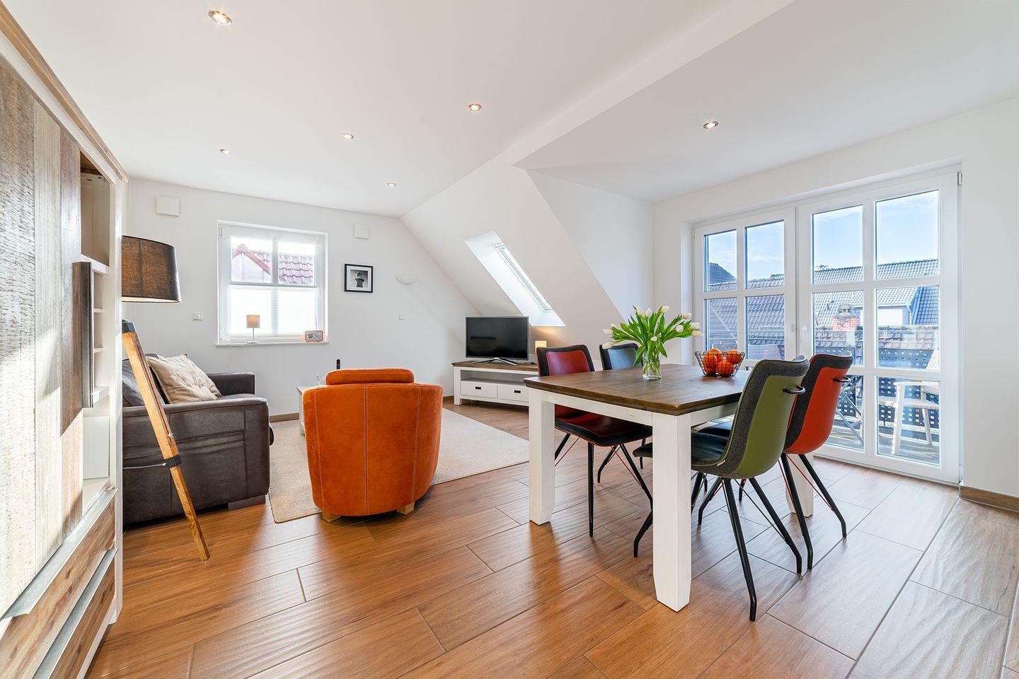 Moderne Ferienwohnung Meerzeit mit Dachstudio und Balkon in Greetsiel, direkt am Nationalpark Niedersächsisches Wattenmeer.