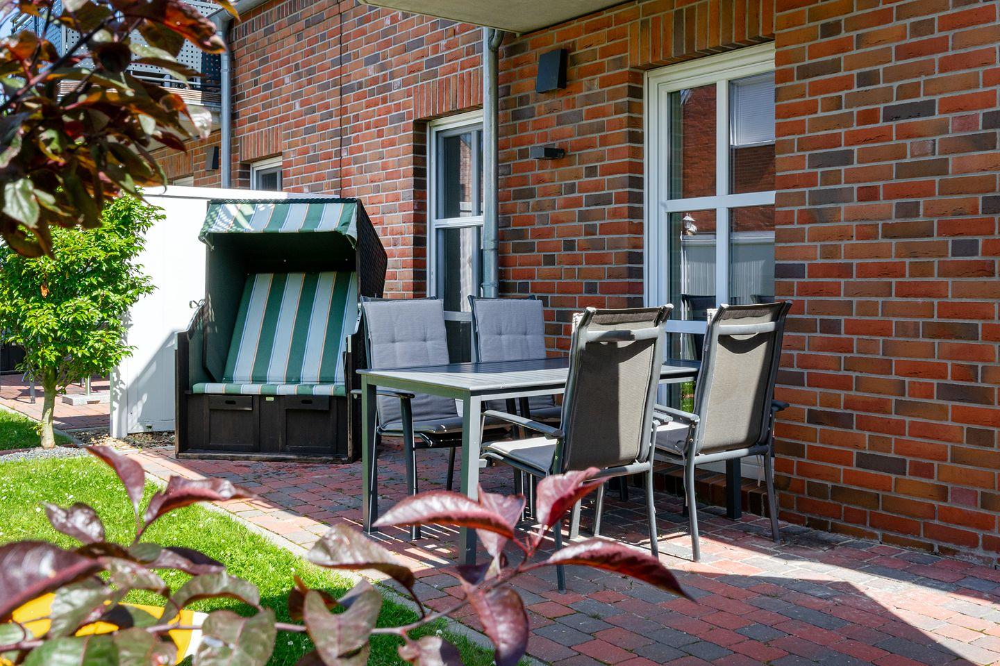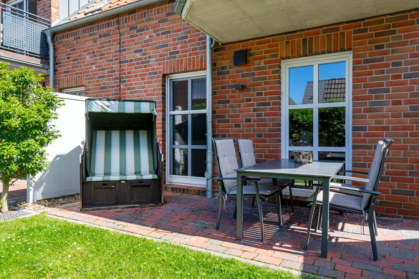 und einem gemütlichen Strandkorb ausgestattet ist. Der zur Wohnung gehörende